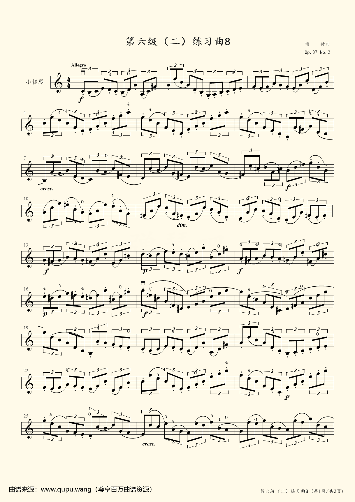 第六级(二)练习曲8,小提琴谱,,钢琴谱,免费下载,钢琴网,iPad,五线谱,乐谱,曲谱,ove