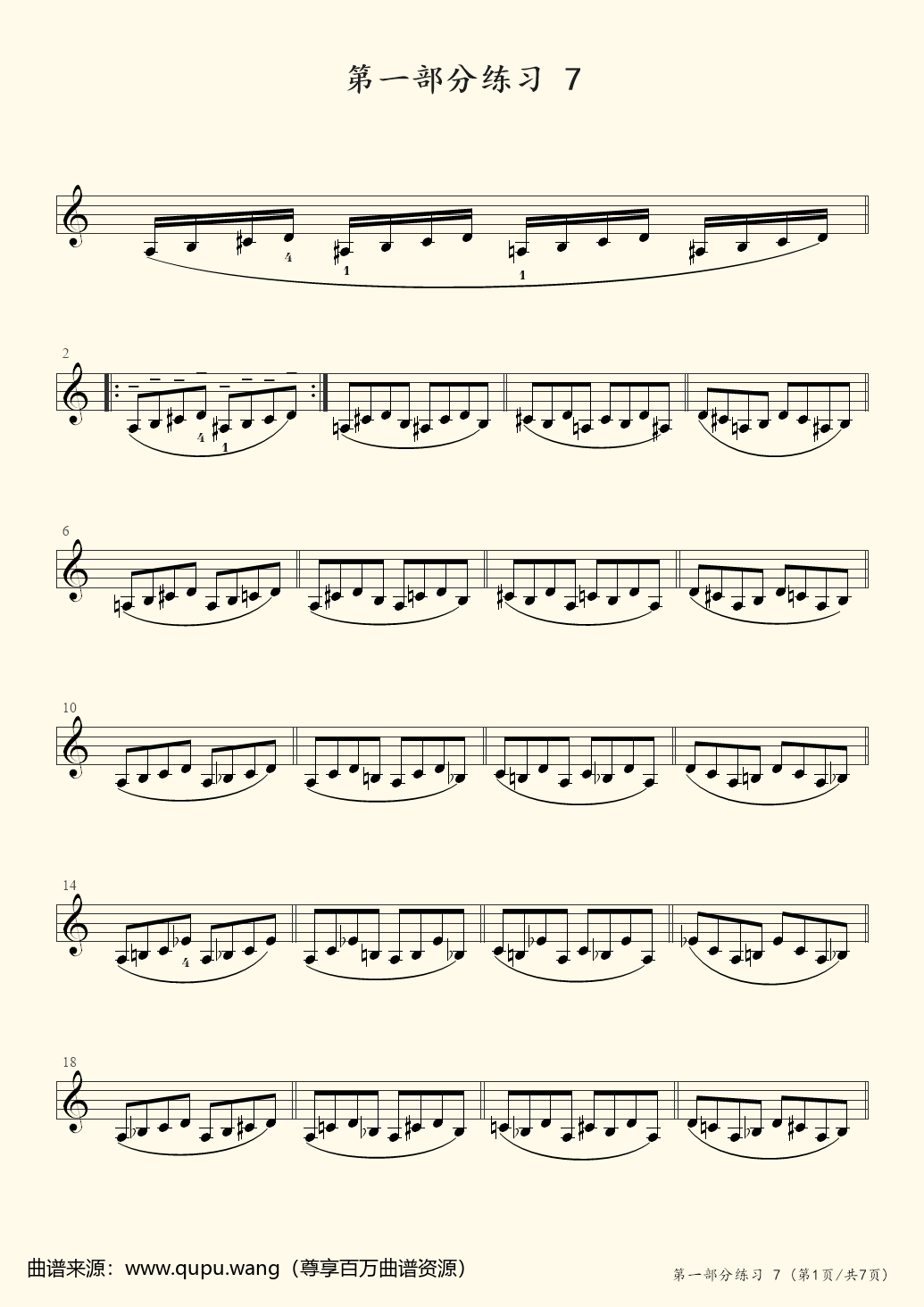 7、第一把位练习 7 - 小提琴左手技巧练习(作品第1号)第一册,小提琴谱,舍夫契克,钢琴谱,免费下载,钢琴网,iPad,五线谱,乐谱,曲谱,ove