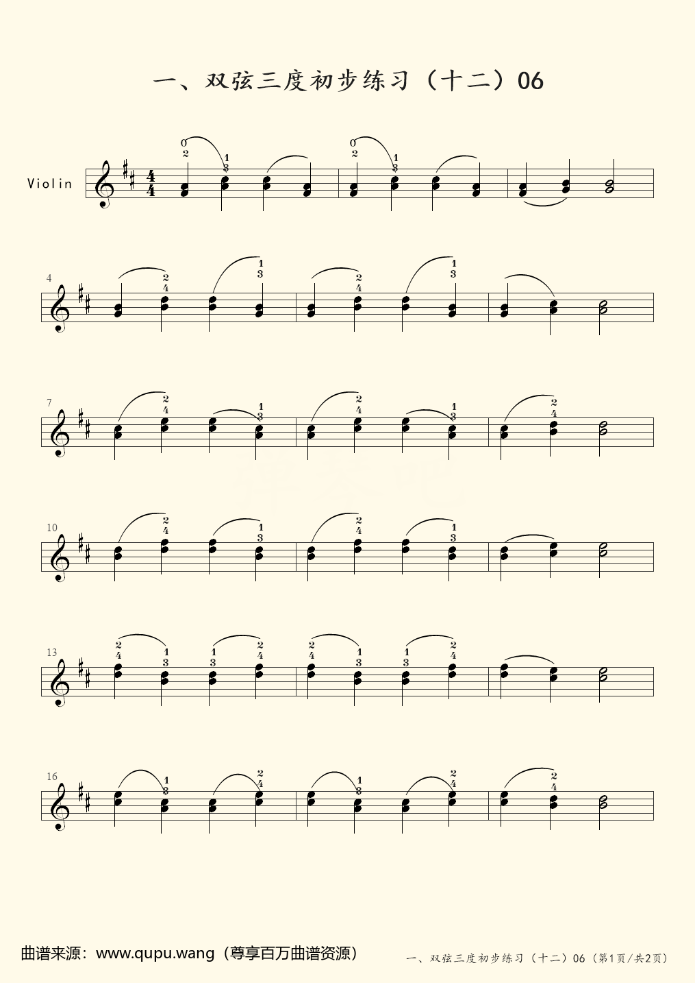 一、双弦三度初步练习(十二)06,小提琴谱,赵惟俭,钢琴谱,免费下载,钢琴网,iPad,五线谱,乐谱,曲谱,ove