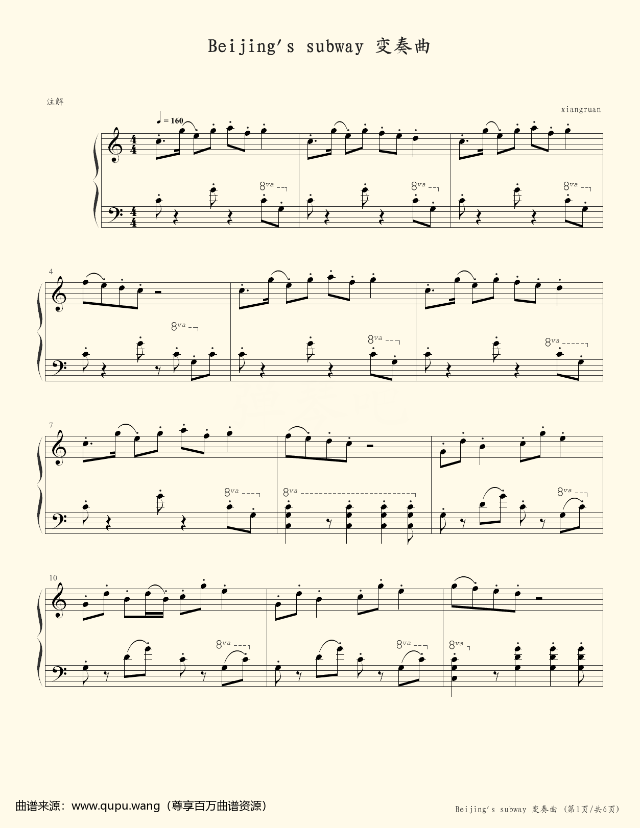 《Beijings subway,钢琴谱》xiangruan|曲谱网|钢琴谱|吉他谱|钢琴曲|乐谱|五线谱|高清免费下载|蛐蛐钢琴网