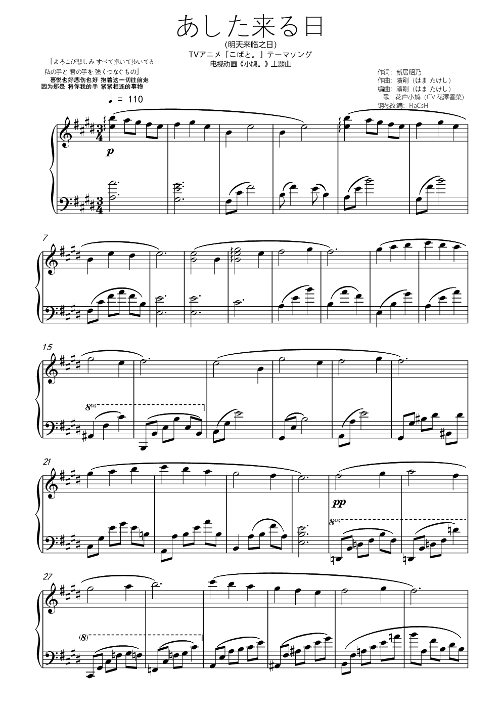 曲谱钢琴网第一钢琴谱门户,提供专业全面的【小鸠。】あした来る日(TV动画《小鸠。》主题曲)琴谱,下载小鸠的【小鸠。】あした来る日(TV动画《小鸠。》主题曲)钢琴谱就来曲谱音乐网