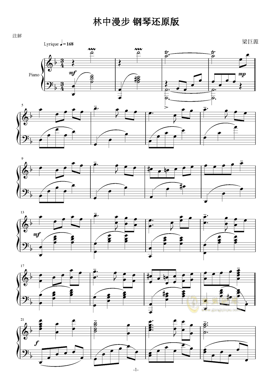 曲谱钢琴网第一钢琴谱门户,提供专业全面的林中漫步 钢琴完美还原版琴谱,下载的林中漫步 钢琴完美还原版钢琴谱就来曲谱音乐网