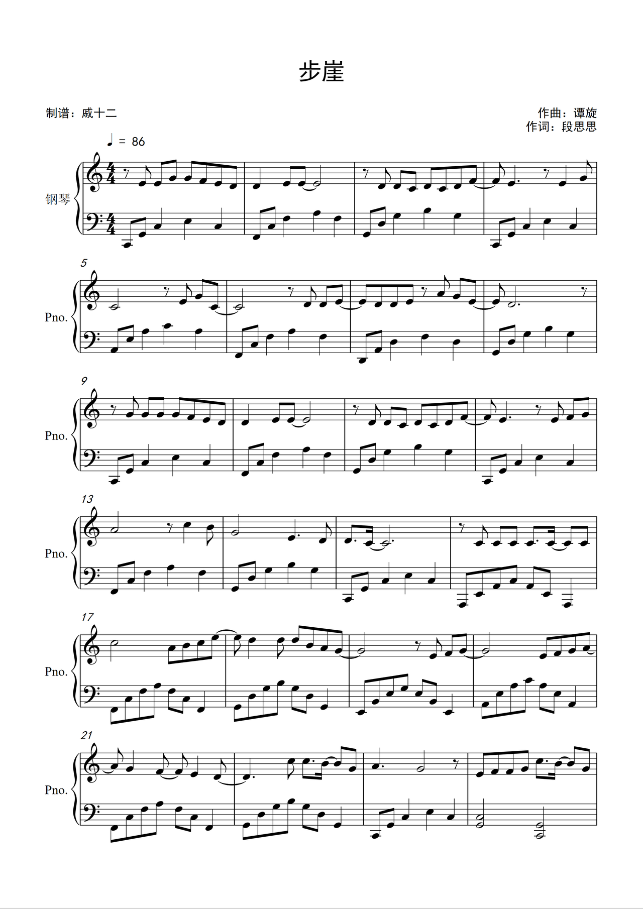 曲谱钢琴网第一钢琴谱门户,提供专业全面的步崖 《琉璃》插曲-C调简单版琴谱,下载李琦的步崖 《琉璃》插曲-C调简单版钢琴谱就来曲谱音乐网