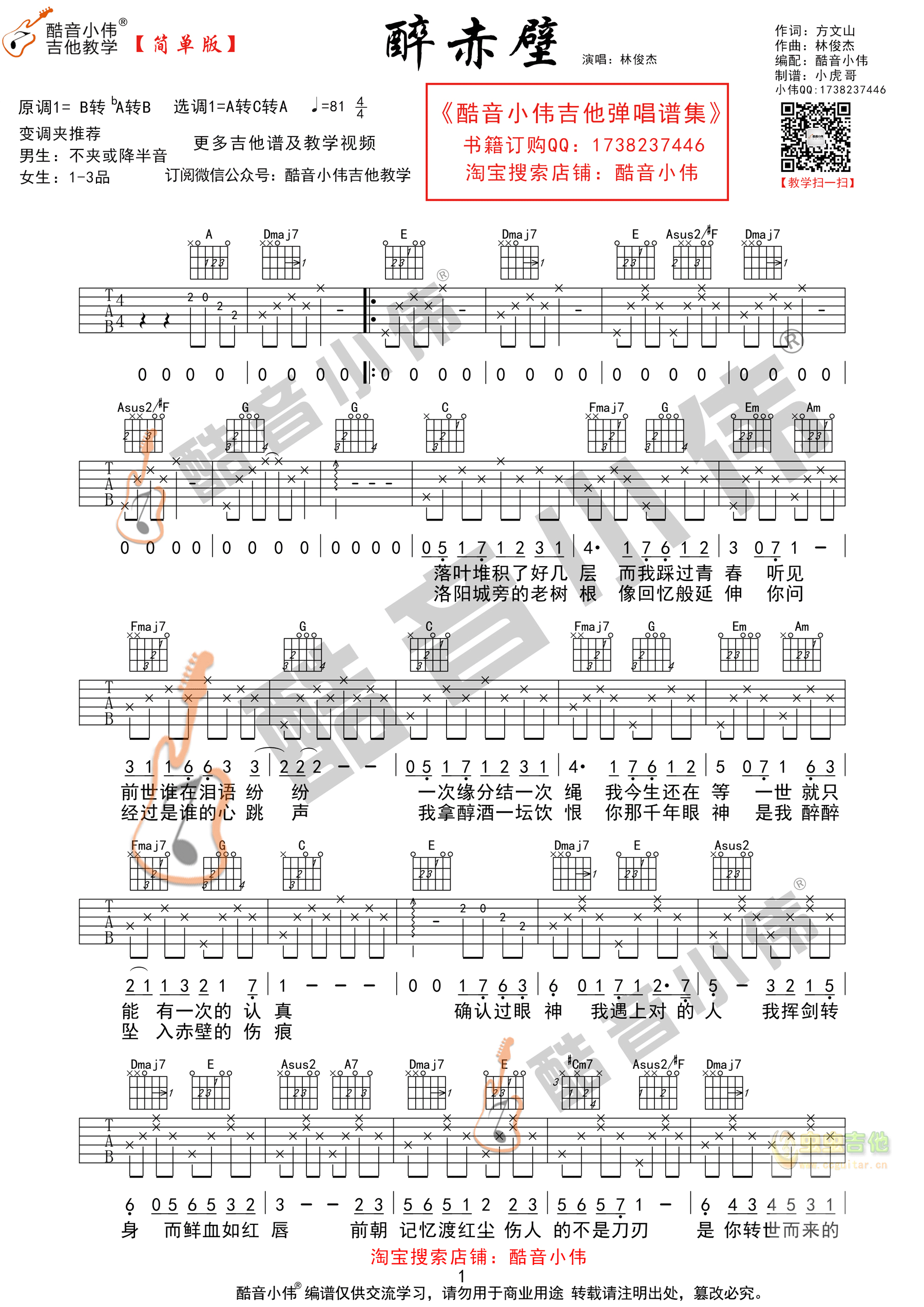 林俊杰《醉赤壁》吉他谱C调指法简单版(酷音小伟吉他教学)弹唱谱醉赤壁更多吉他谱下载地址 微信公众号:酷音小伟吉他教学 吉他教学视频每周更新,优酷频道http://i.youku.com/i/UMzE2NTY1MDc2MA==?spm=a2h0k.8191407.0.0 淘宝店铺:https://kuyinxiaowei.taobao.com 华语男歌手林俊杰c调