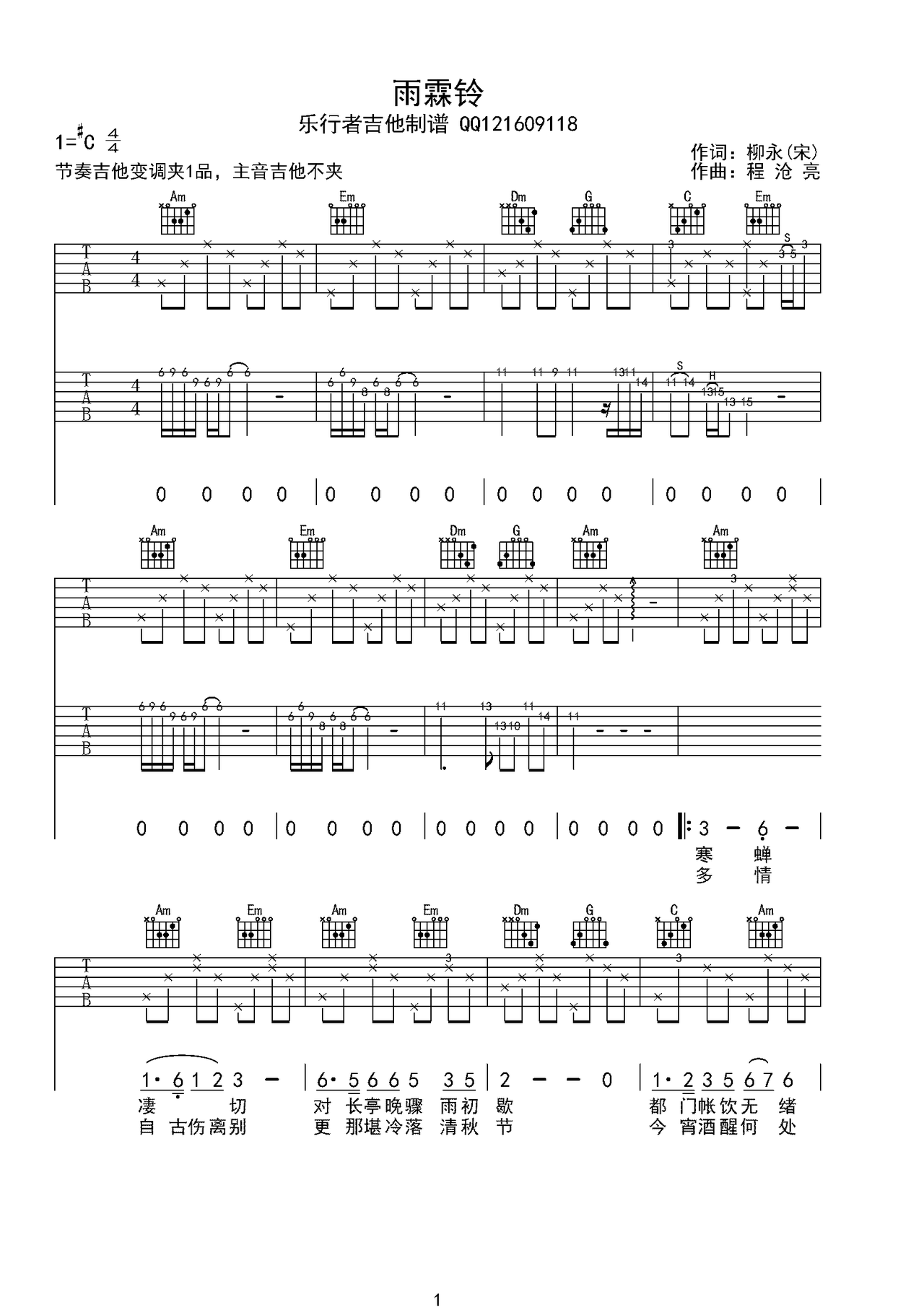 曲谱吉他网吉他爱好者的天堂,提供专业全面的雨霖铃吉他谱,下载雨霖铃吉他谱就来曲谱吉他网