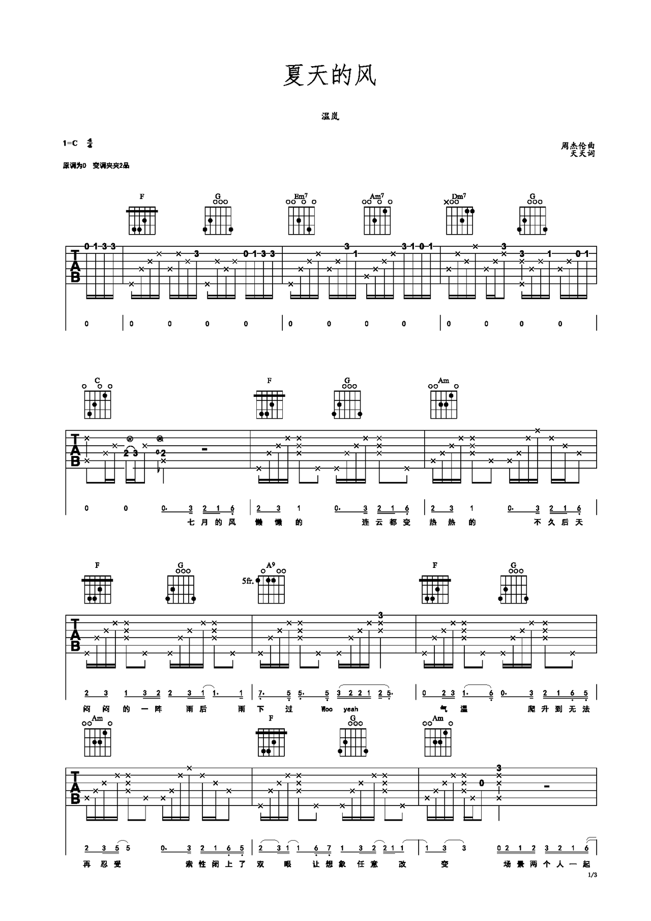 曲谱吉他网吉他爱好者的天堂,提供专业全面的夏天的风吉他谱,下载夏天的风吉他谱就来曲谱吉他网