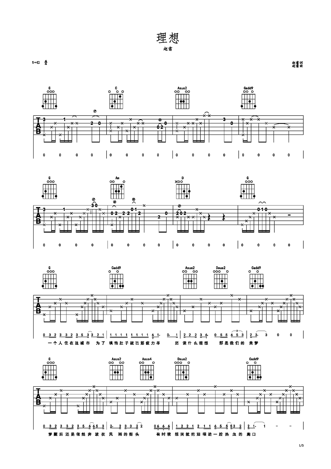 理想 G调 赵雷弹唱谱理想华语男歌手赵雷G调赵雷