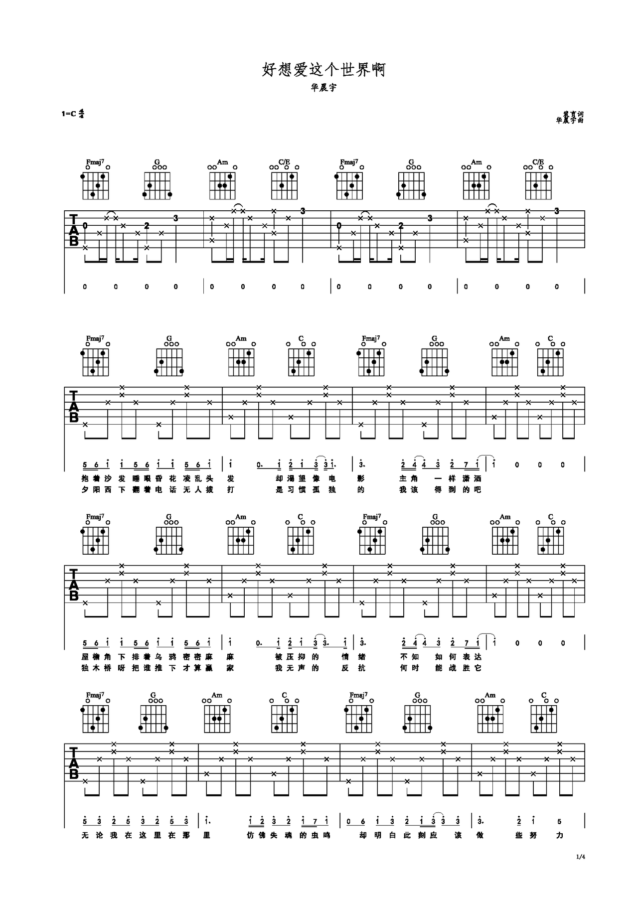 好想爱这个世界啊 C调 华晨宇弹唱谱好想爱这个世界啊华语男歌手华晨宇C调华晨宇