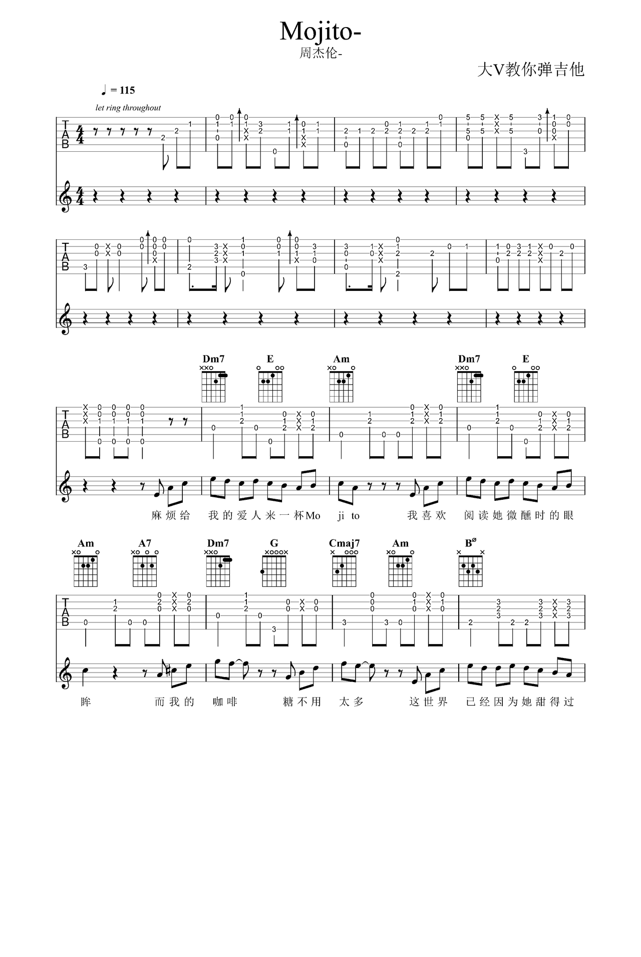 曲谱吉他网吉他爱好者的天堂,提供专业全面的Mojito吉他谱,下载Mojito吉他谱就来曲谱吉他网