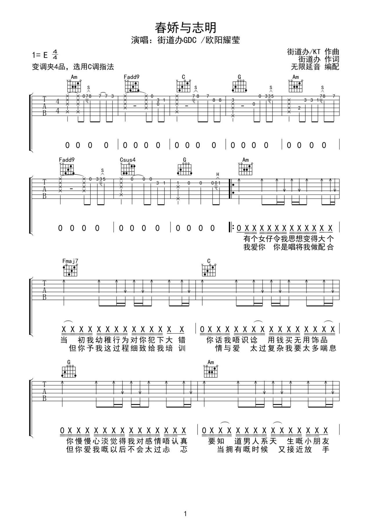 春娇与志明弹唱谱春娇与志明名人名曲街道办C调
