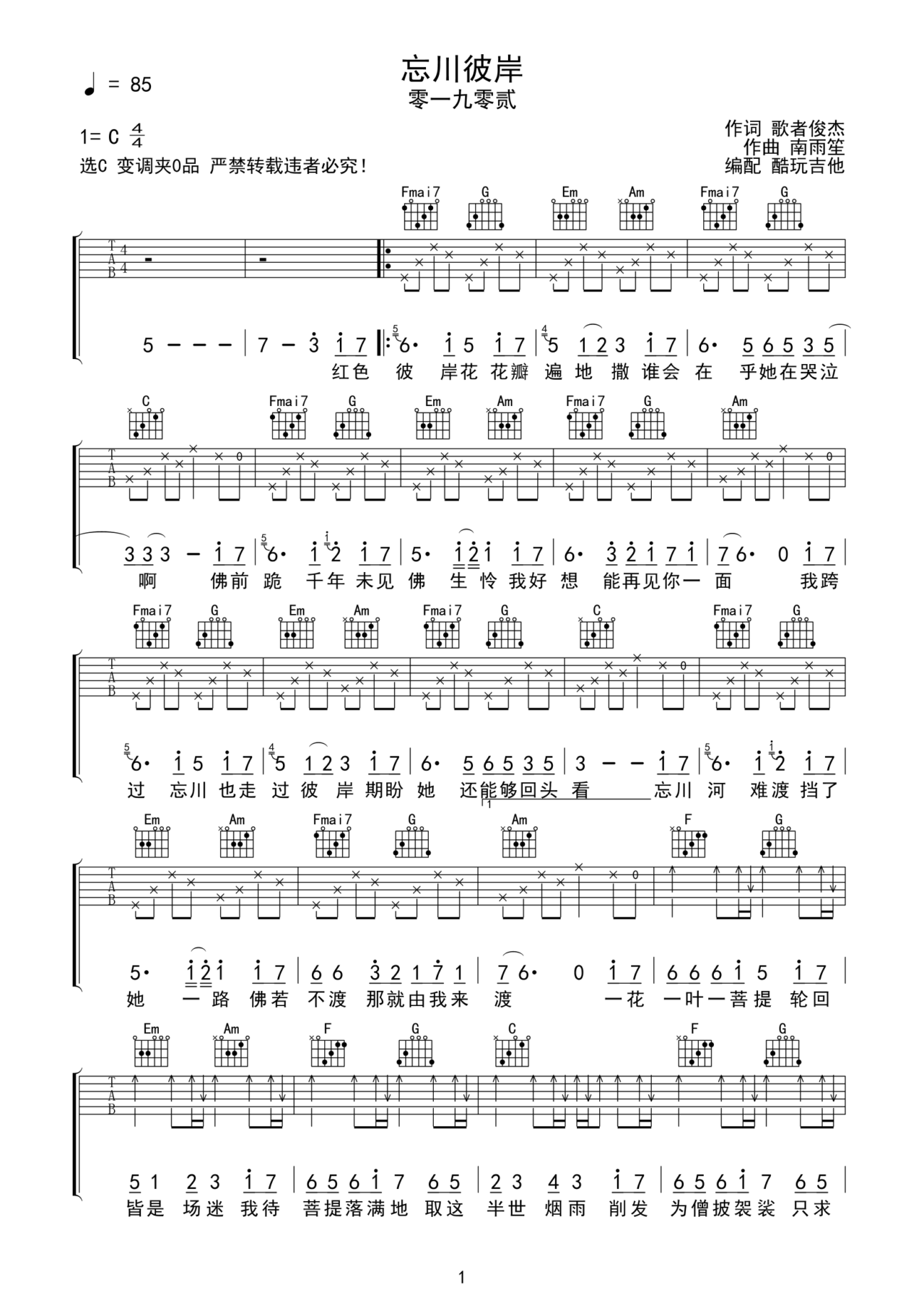 曲谱吉他网吉他爱好者的天堂,提供专业全面的忘川彼岸吉他谱,下载忘川彼岸吉他谱就来曲谱吉他网
