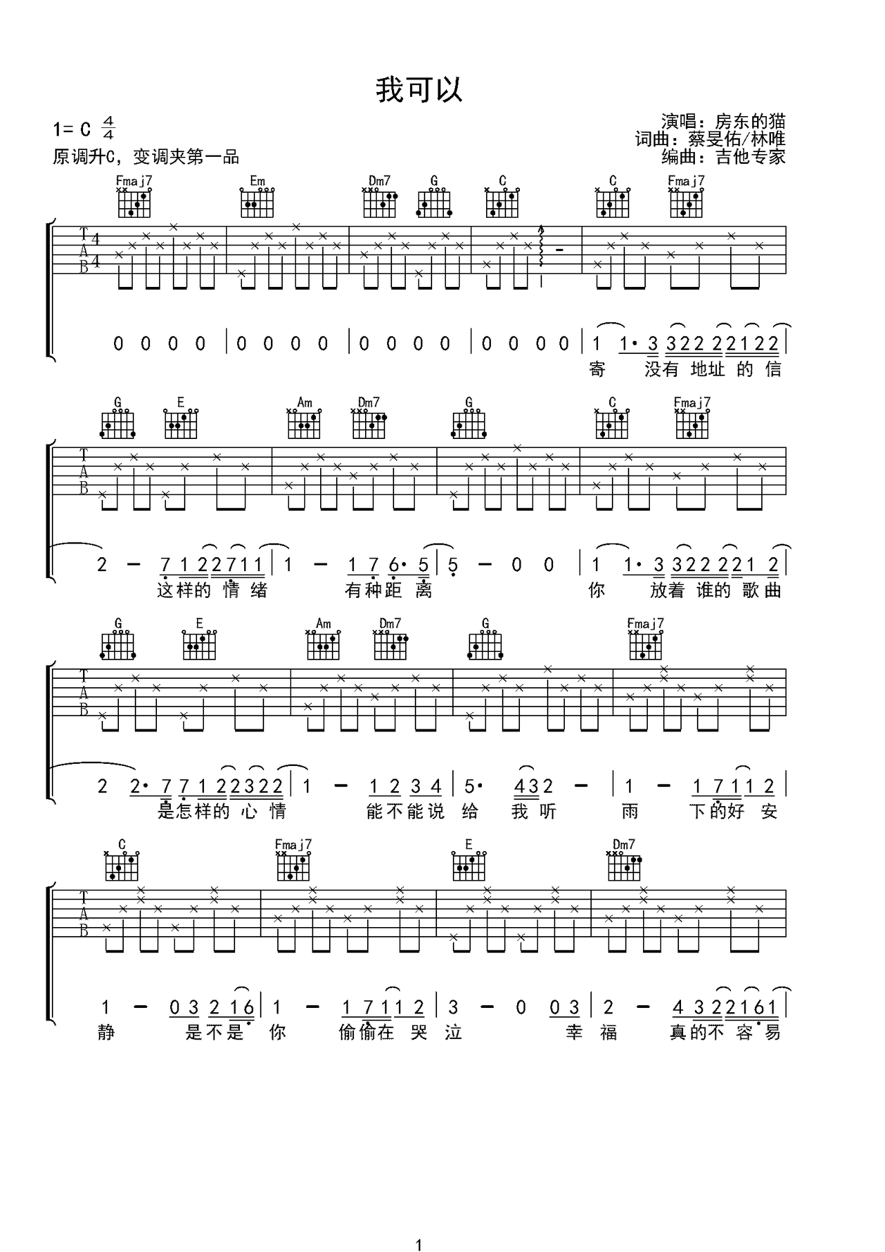 我可以弹唱谱我可以华语男歌手房东的猫C调
