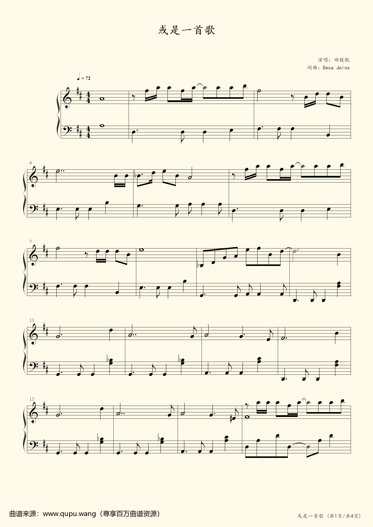 或是一首歌,钢琴谱,田馥甄,钢琴谱,免费下载,钢琴网,iPad,五线谱,乐谱,曲谱,ove