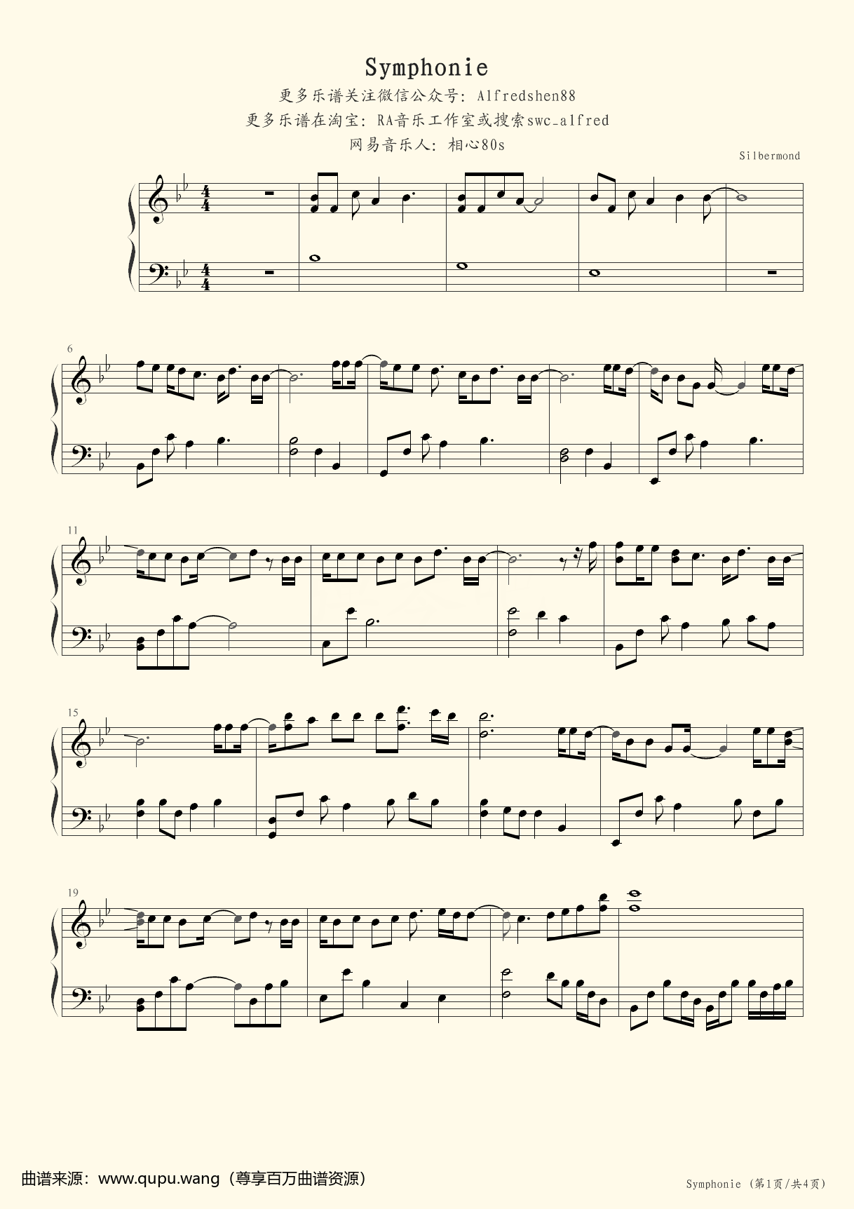 Symphonie,钢琴谱,Silbermond,钢琴谱,免费下载,钢琴网,iPad,五线谱,乐谱,曲谱,ove