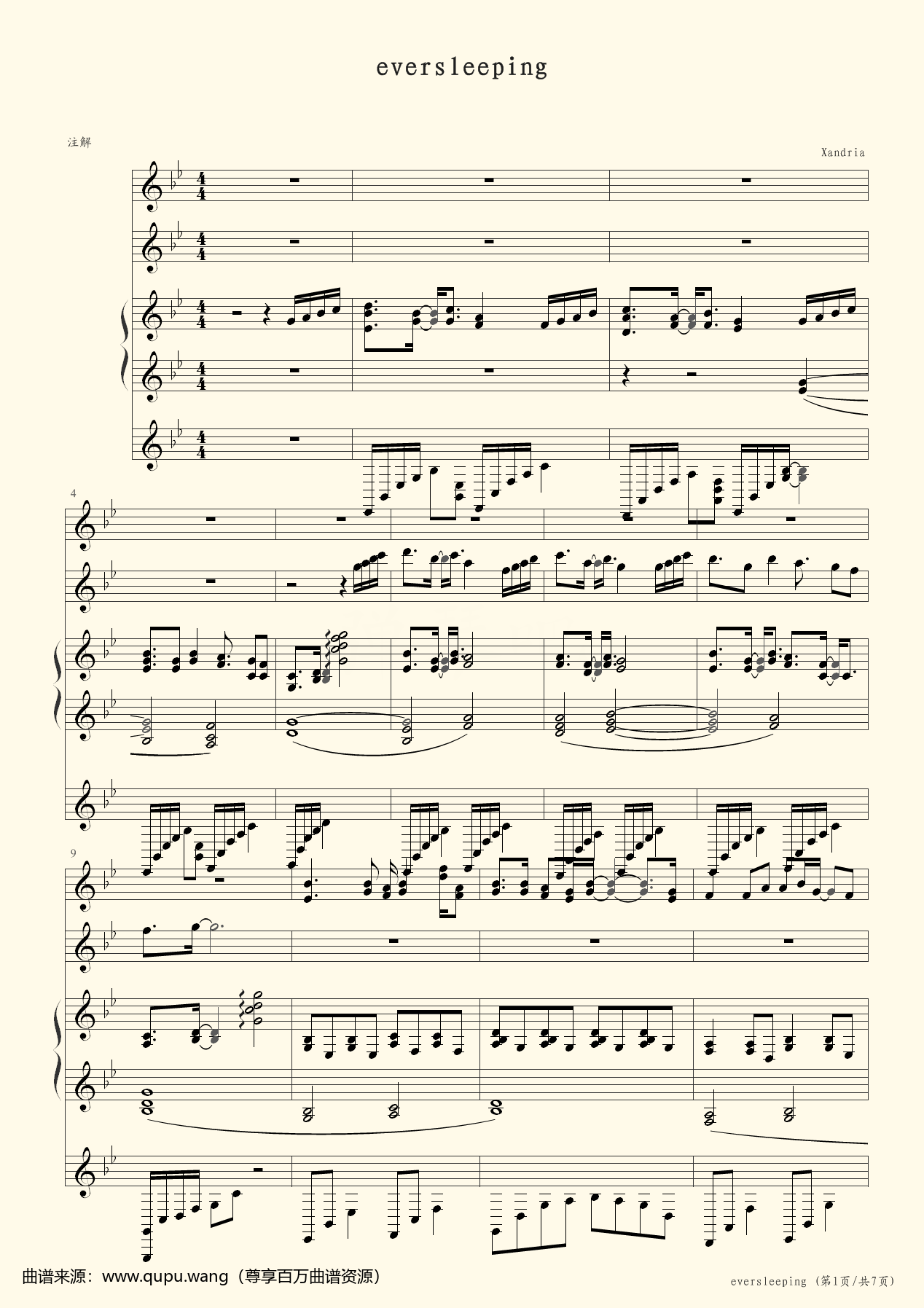 Xandria - Eversleeping,钢琴谱,Xandria,钢琴谱,免费下载,钢琴网,iPad,五线谱,乐谱,曲谱,ove