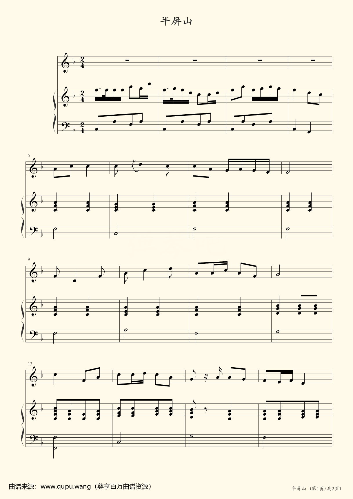 半屏山,钢琴谱,魏立、王碧云,钢琴谱,免费下载,钢琴网,iPad,五线谱,乐谱,曲谱,ove