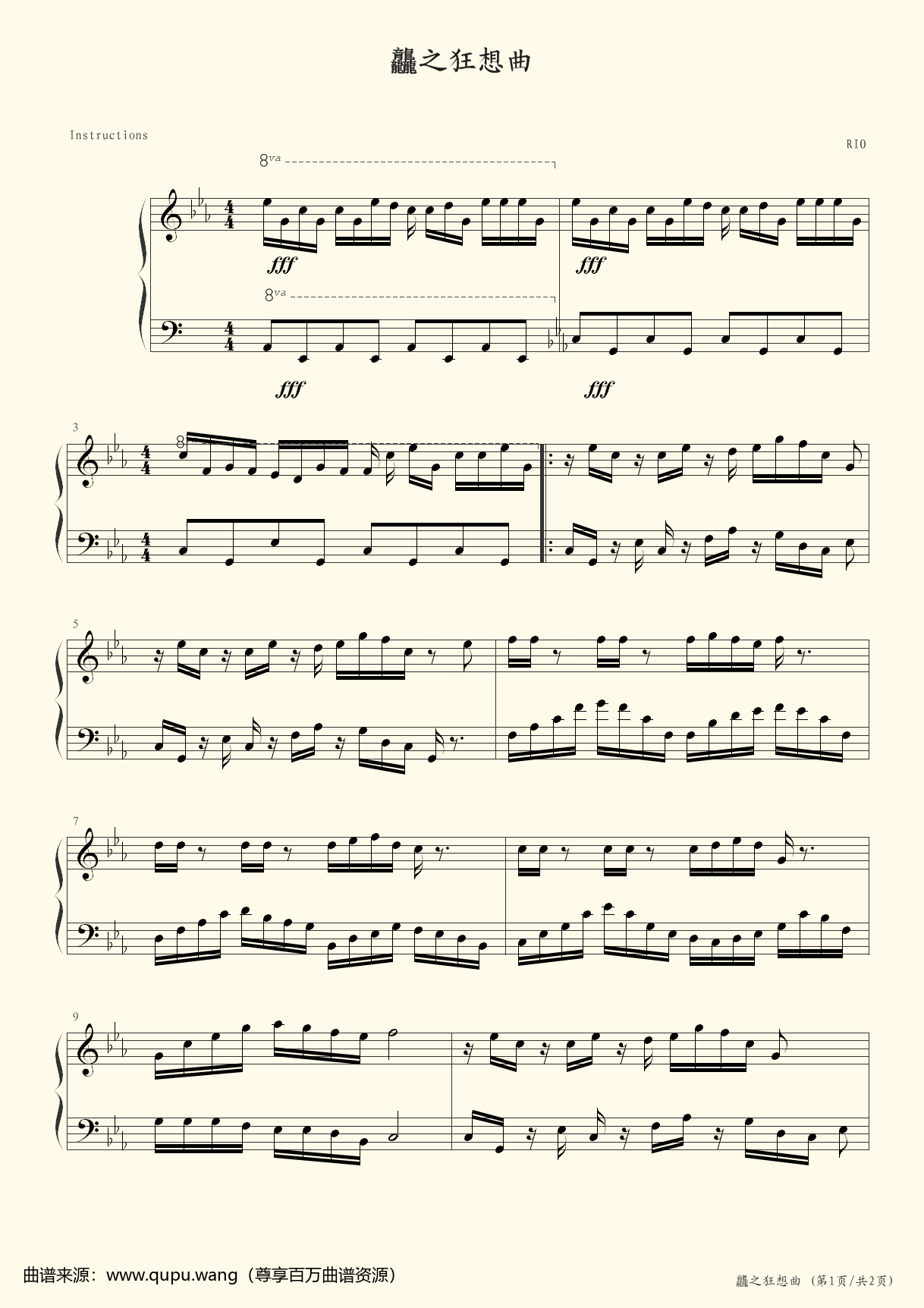 《龙之狂想曲,钢琴谱》RIO|曲谱网|钢琴谱|吉他谱|钢琴曲|乐谱|五线谱|高清免费下载|蛐蛐钢琴网