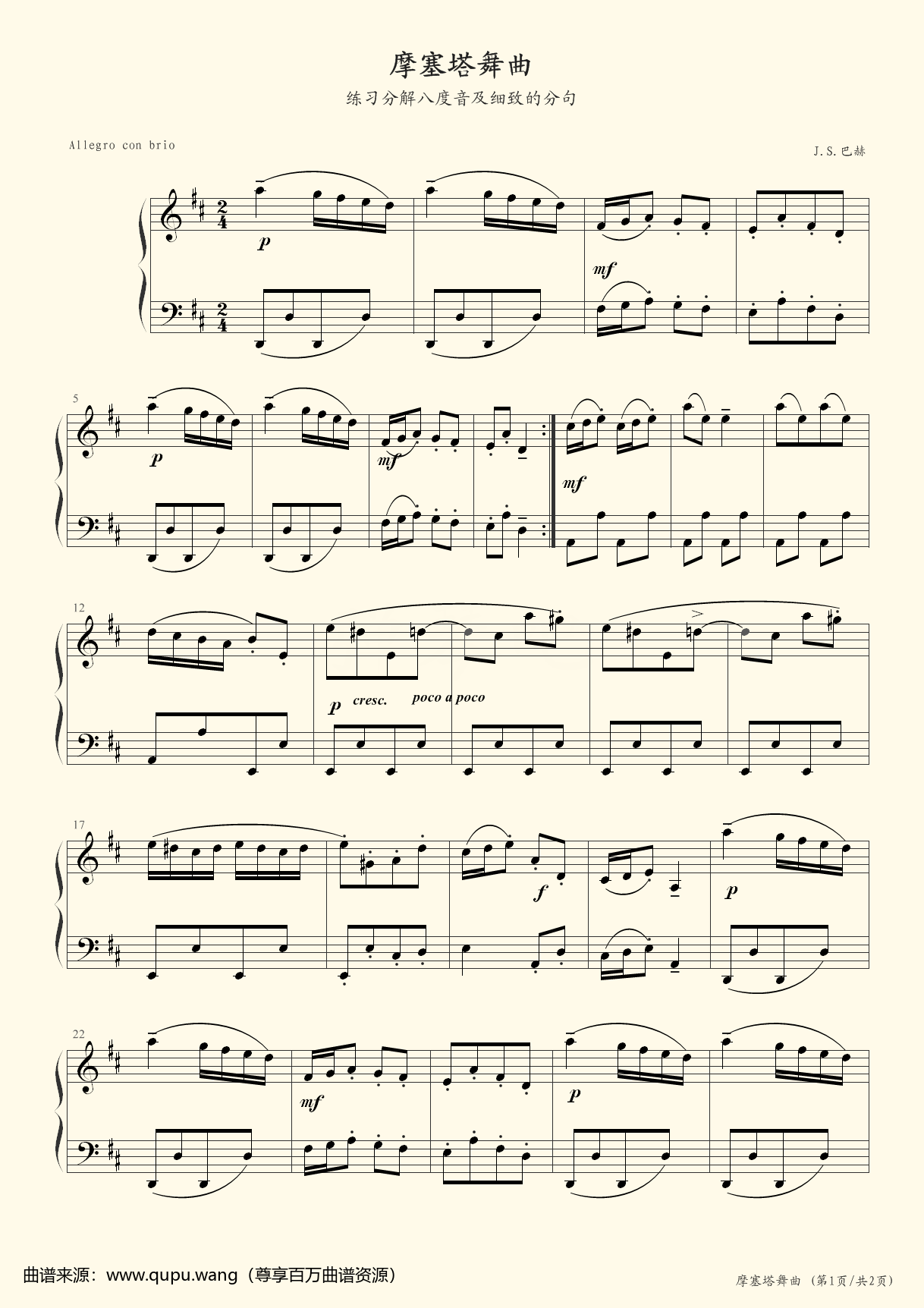 《巴赫初级钢琴曲-13.摩塞塔舞曲,钢琴谱》巴赫|曲谱网|钢琴谱|吉他谱|钢琴曲|乐谱|五线谱|高清免费下载|蛐蛐钢琴网