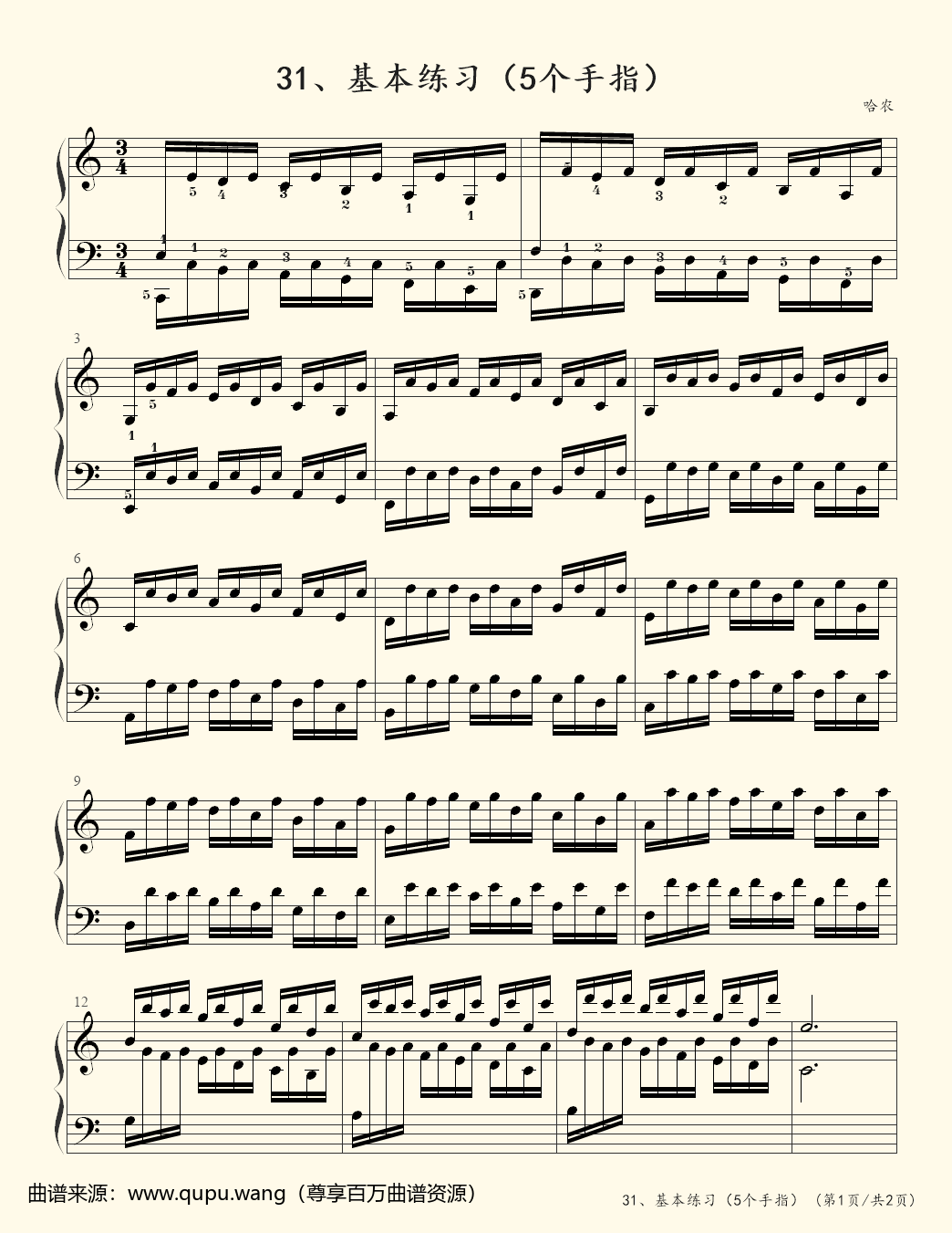 《孩子们的哈农,钢琴谱》31,5个手指,哈农|曲谱网|钢琴谱|吉他谱|钢琴曲|乐谱|五线谱|高清免费下载|蛐蛐钢琴网