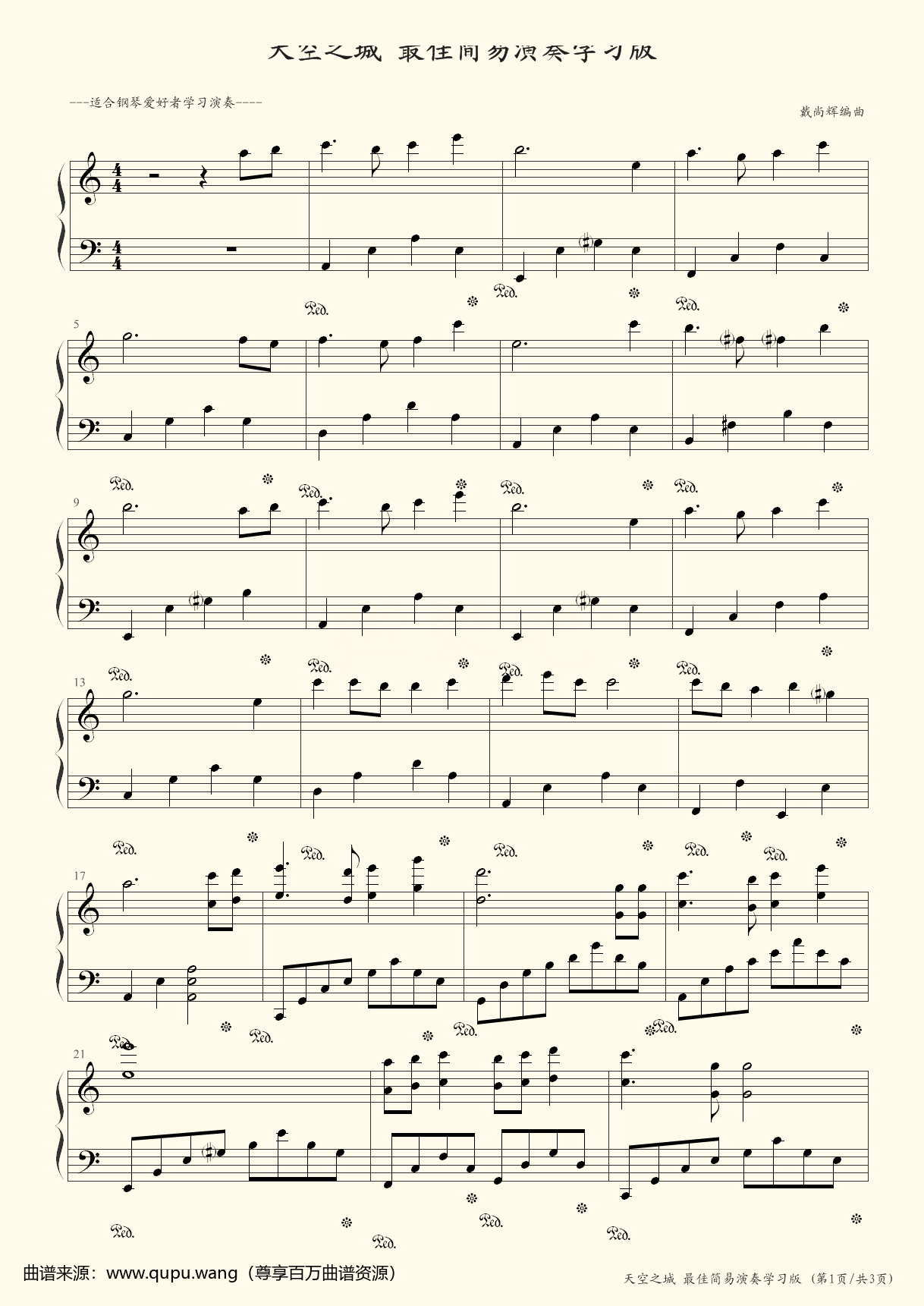 《天空之城 最佳简易演奏学习版,钢琴谱》戴尚辉|曲谱网|钢琴谱|吉他谱|钢琴曲|乐谱|五线谱|高清免费下载|蛐蛐钢琴网