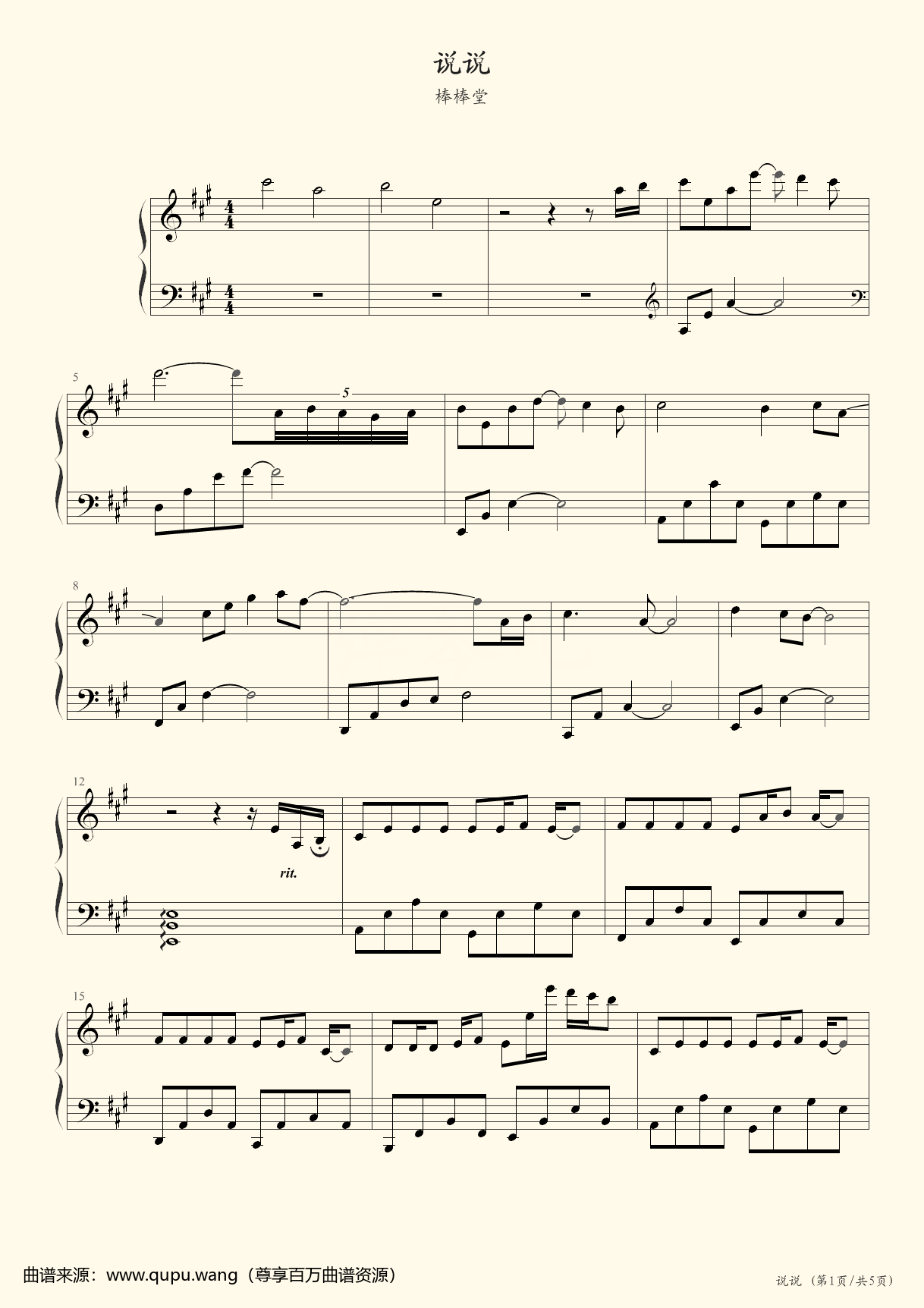 说说,钢琴谱,棒棒堂,钢琴谱,免费下载,钢琴网,iPad,五线谱,乐谱,曲谱,ove