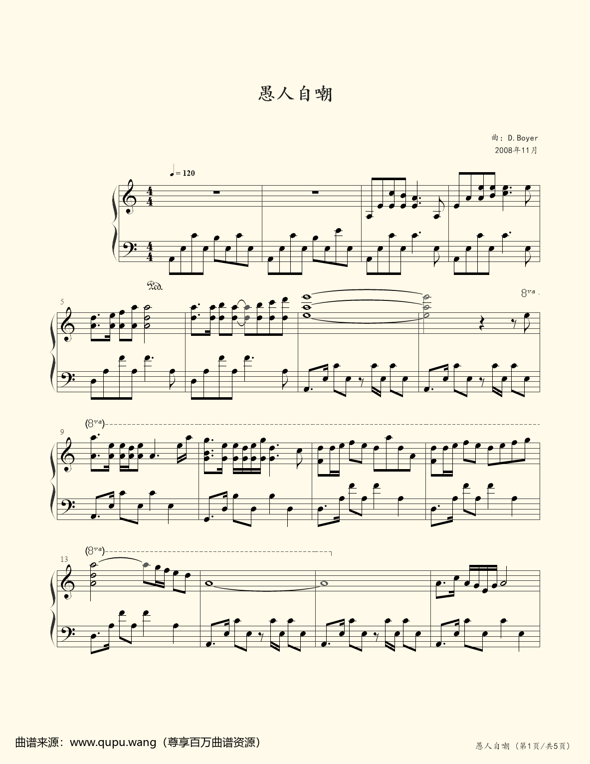 愚人自嘲,钢琴谱,DB,钢琴谱,免费下载,钢琴网,iPad,五线谱,乐谱,曲谱,ove