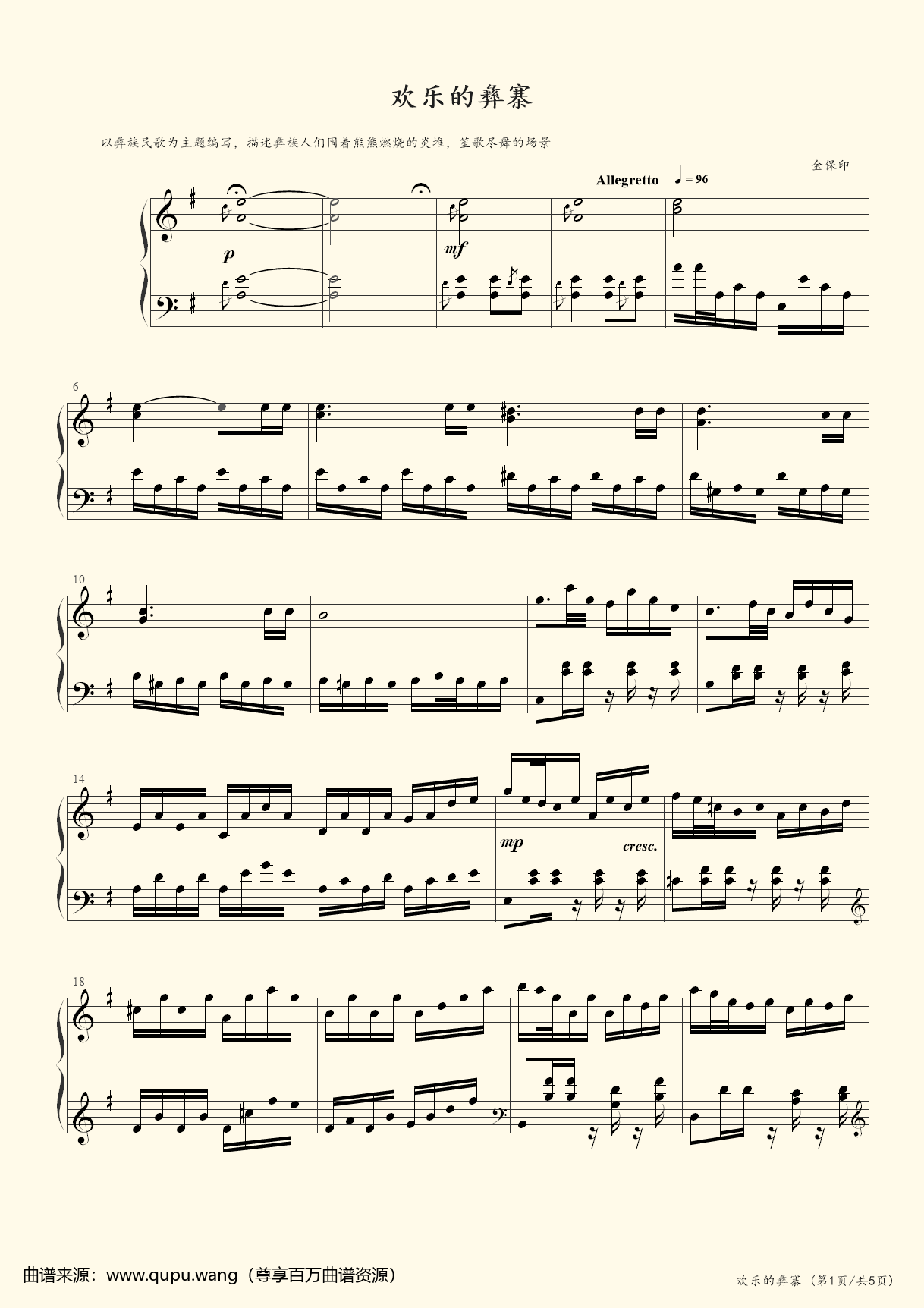 《欢乐的彝寨,钢琴谱》902chang|曲谱网|钢琴谱|吉他谱|钢琴曲|乐谱|五线谱|高清免费下载|蛐蛐钢琴网
