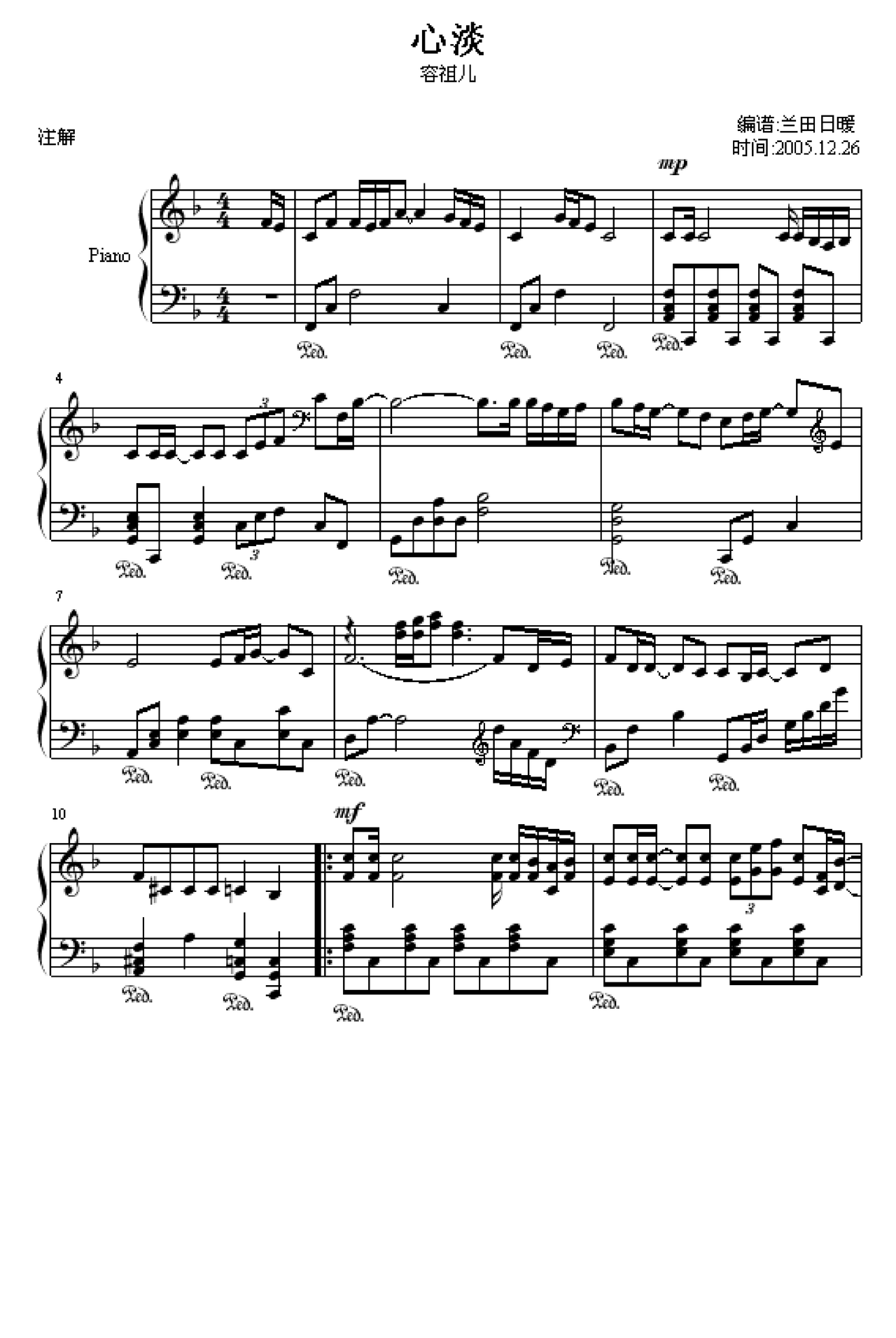 曲谱钢琴网第一钢琴谱门户,提供专业全面的心淡琴谱,下载容祖儿 古巨基的心淡钢琴谱就来曲谱音乐网