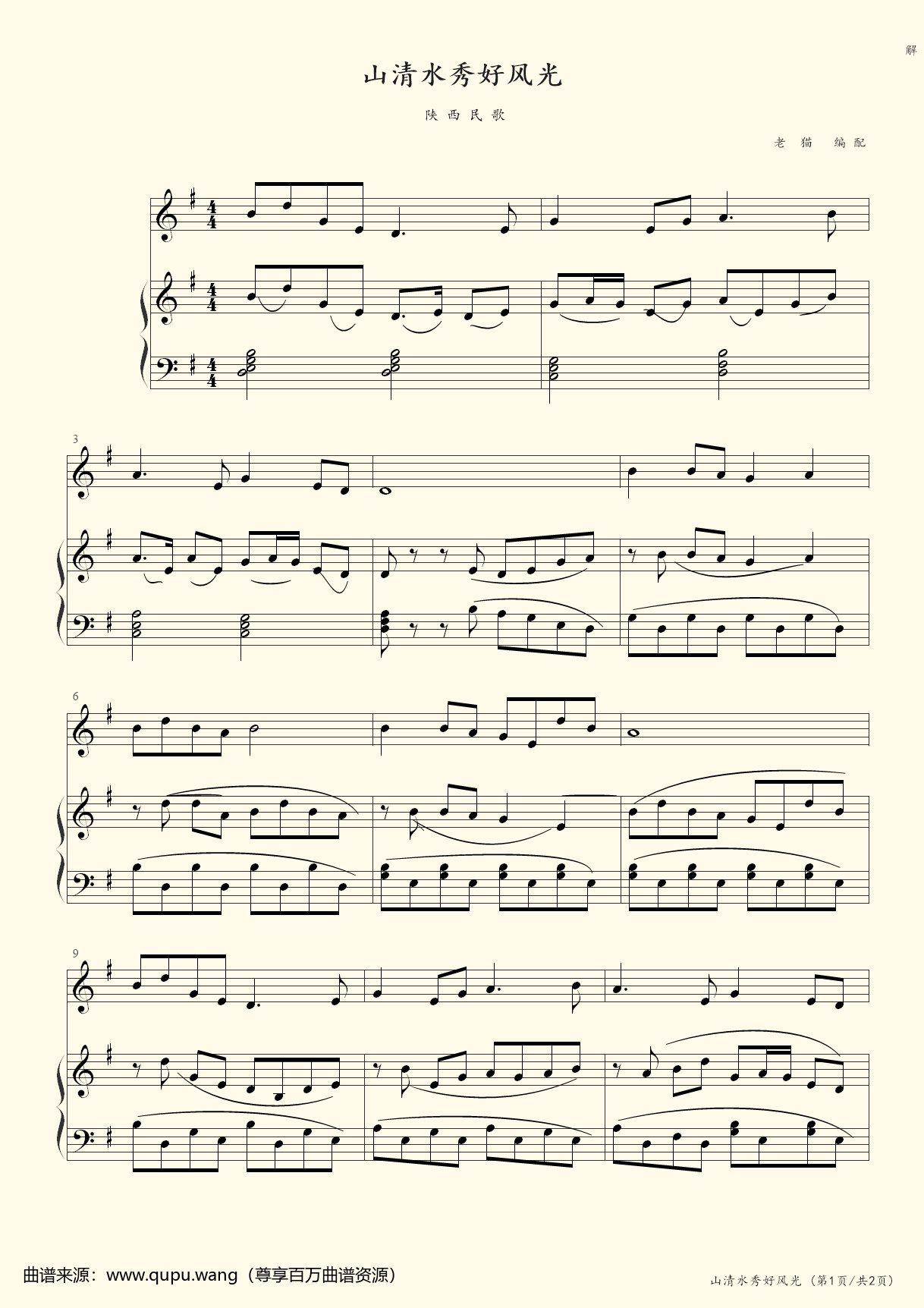 《山清水秀好风光,钢琴谱》中国名曲|曲谱网|钢琴谱|吉他谱|钢琴曲|乐谱|五线谱|高清免费下载|蛐蛐钢琴网
