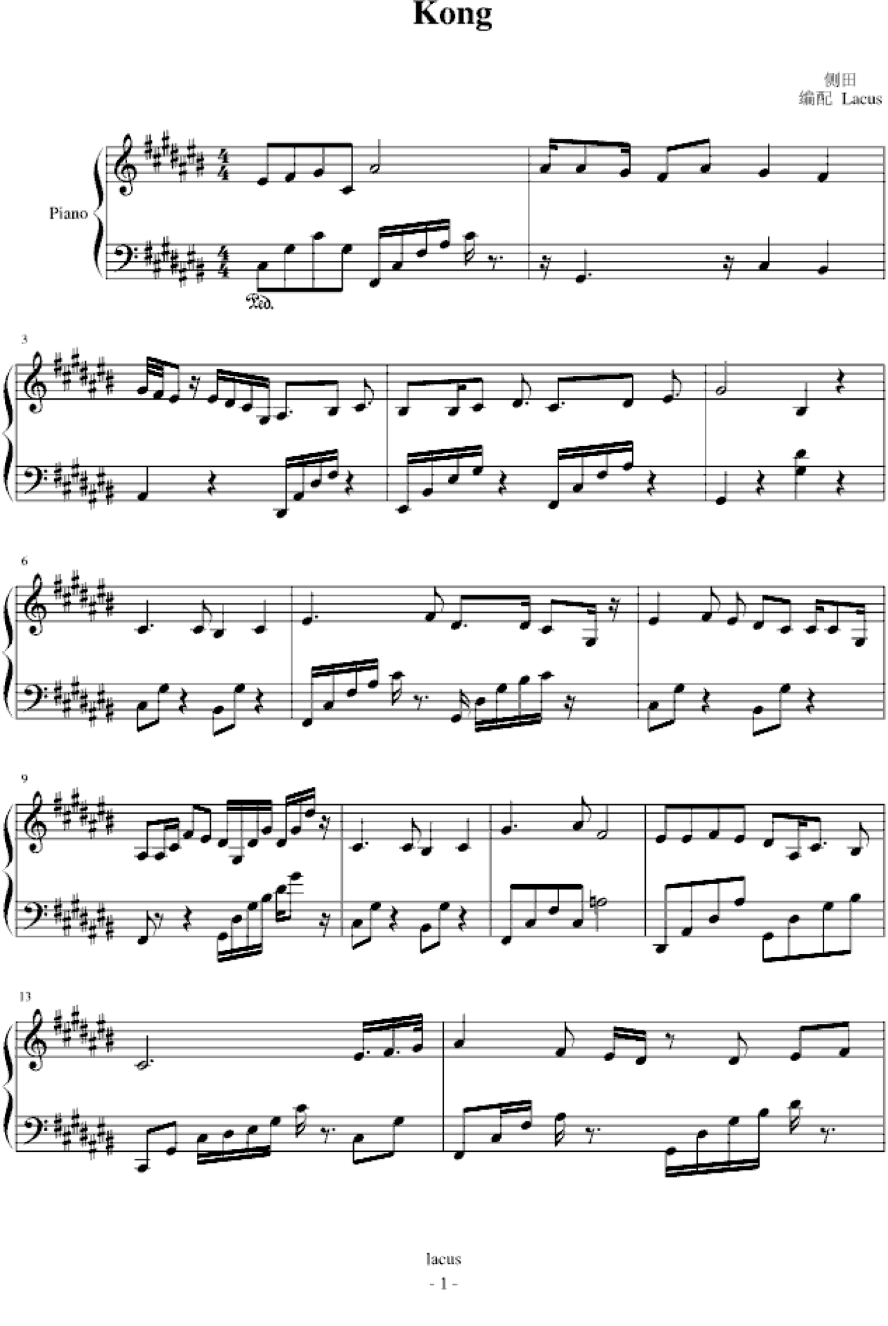 曲谱钢琴网第一钢琴谱门户,提供专业全面的Kong-侧田—Lacus版琴谱,下载侧田的Kong-侧田—Lacus版钢琴谱就来曲谱音乐网