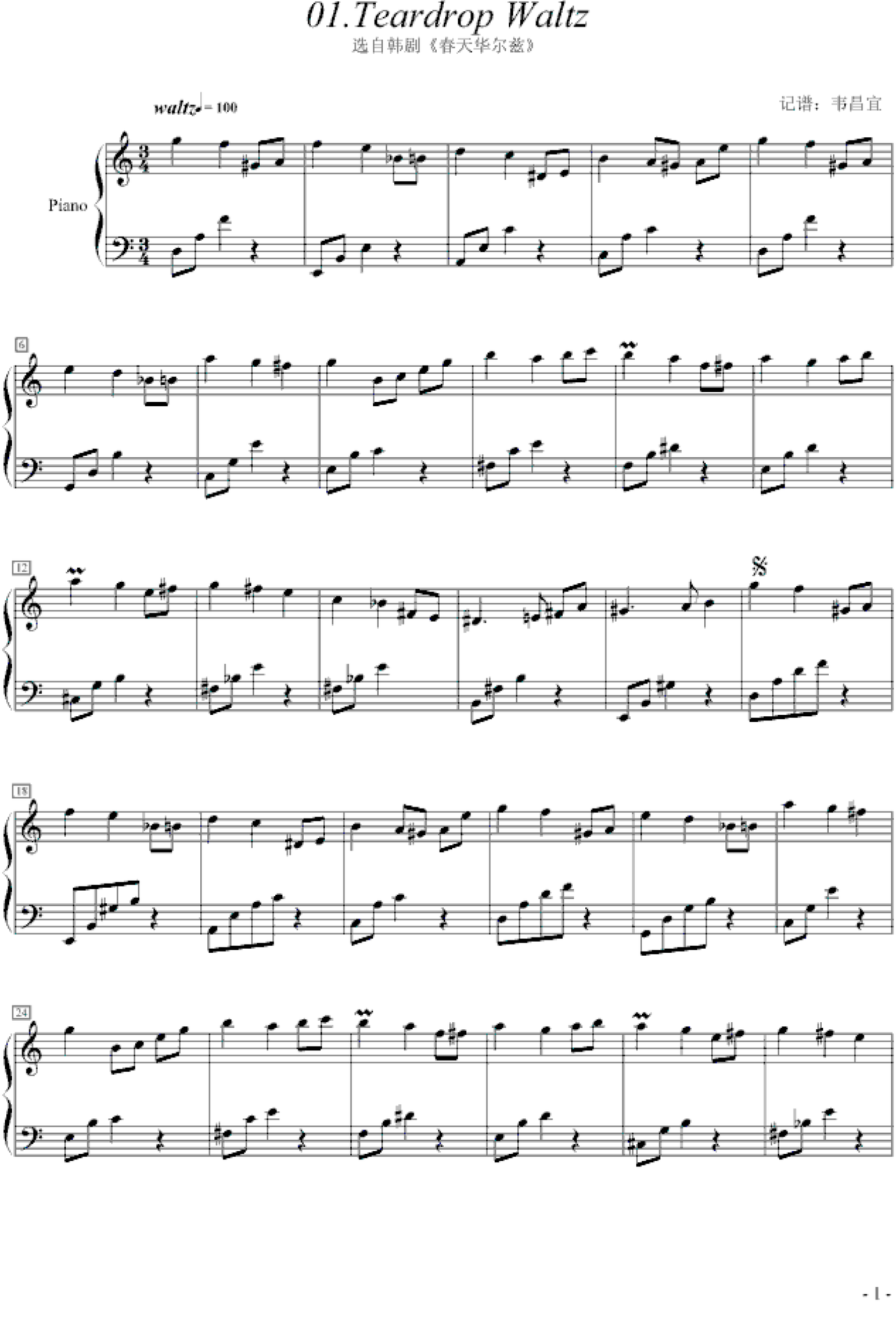 曲谱钢琴网第一钢琴谱门户,提供专业全面的Teardrop Waltz -韩剧《春天华尔兹》琴谱,下载韩日剧的Teardrop Waltz -韩剧《春天华尔兹》钢琴谱就来曲谱音乐网