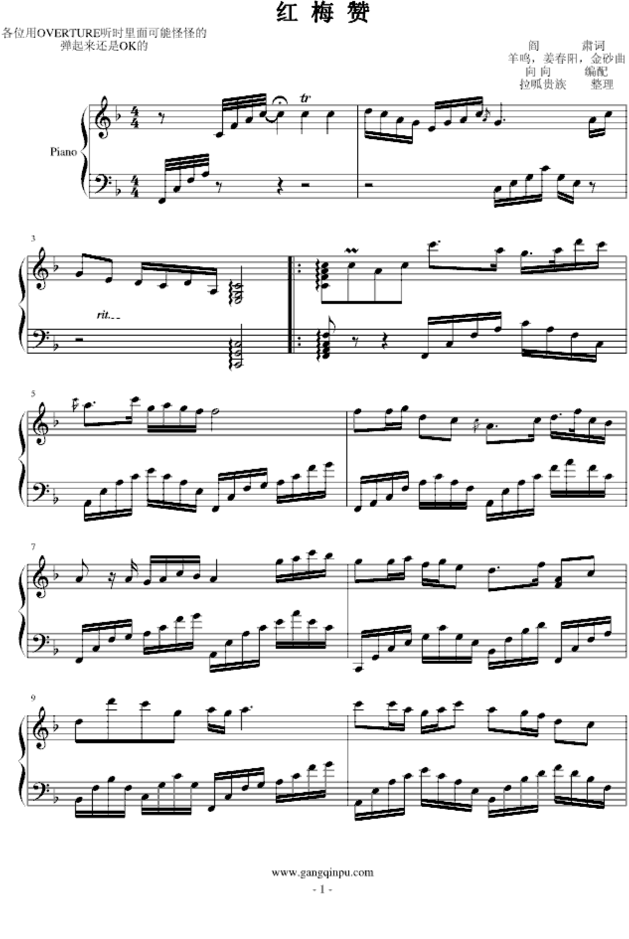 曲谱钢琴网第一钢琴谱门户,提供专业全面的红梅赞琴谱,下载中国名曲的红梅赞钢琴谱就来曲谱音乐网