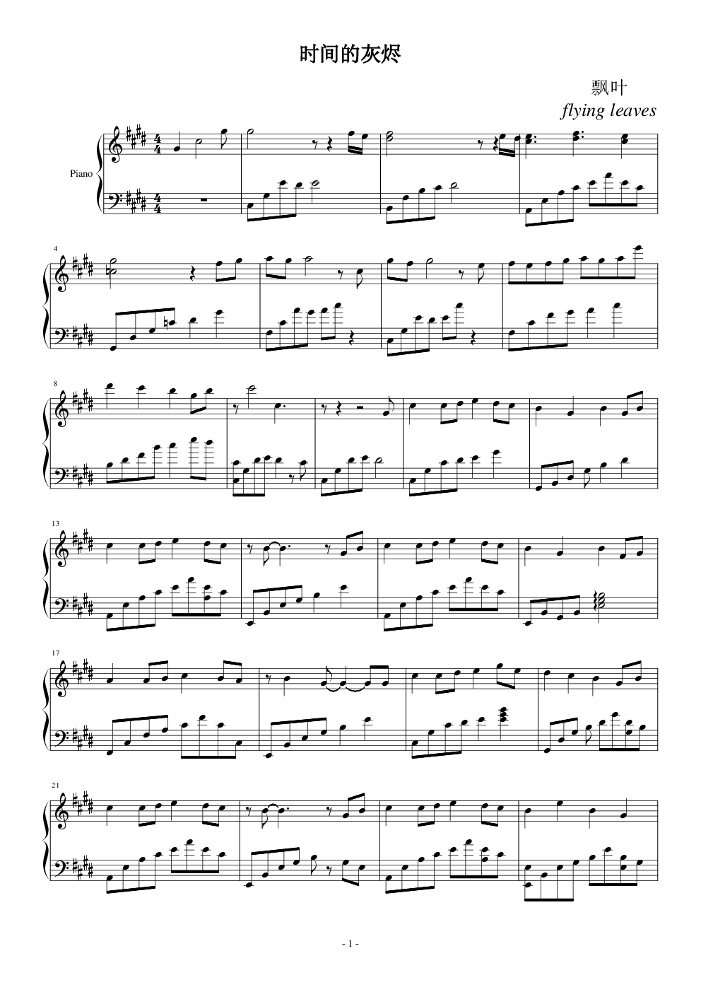时间的灰烬独奏谱时间的灰烬一切的繁华 都已经是过去 (麻烦管理员帮忙配个好听的钢琴音色)名人名曲飘叶-