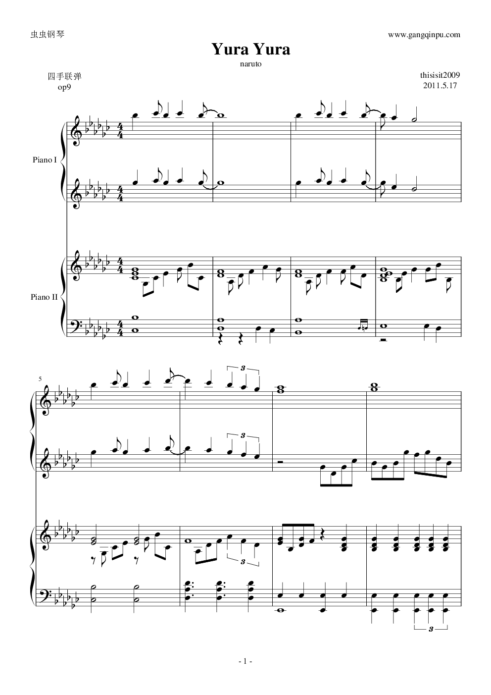 曲谱钢琴网第一钢琴谱门户,提供专业全面的【】火影忍者主题曲yura yura,钢琴四手琴谱,下载火影忍者中的【】火影忍者主题曲yura yura,钢琴四手钢琴谱就来曲谱音乐网