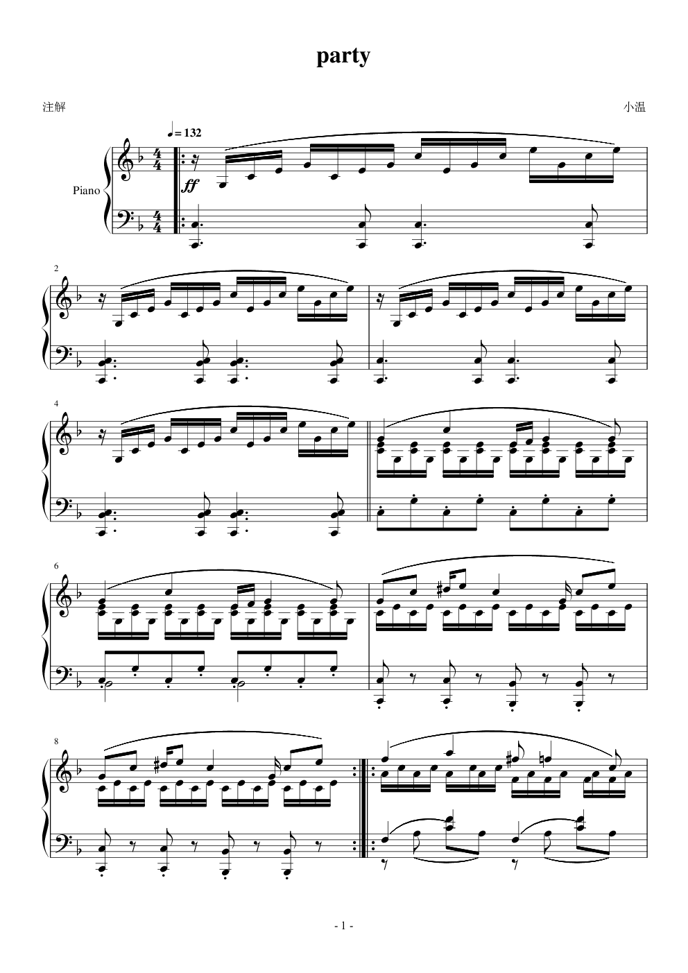 party独奏谱party 欧美日韩一个球F调