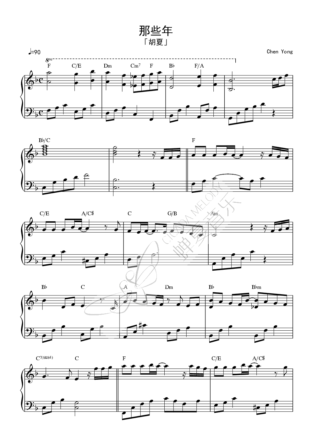 曲谱钢琴网第一钢琴谱门户,提供专业全面的<那些年>琴谱,下载胡夏/郁可唯的<那些年>钢琴谱就来曲谱音乐网