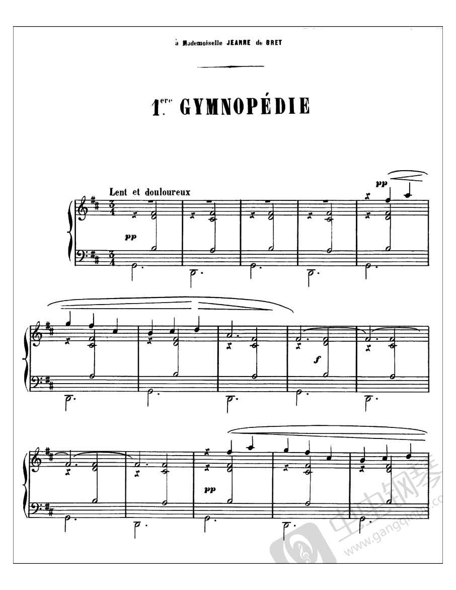 曲谱钢琴网第一钢琴谱门户,提供专业全面的3首祭祀舞曲(裸体舞曲) Trois Gymnopediés琴谱,下载萨蒂【埃里克·阿尔弗雷德·莱索·萨蒂】的3首祭祀舞曲(裸体舞曲) Trois Gymnopediés钢琴谱就来曲谱音乐网