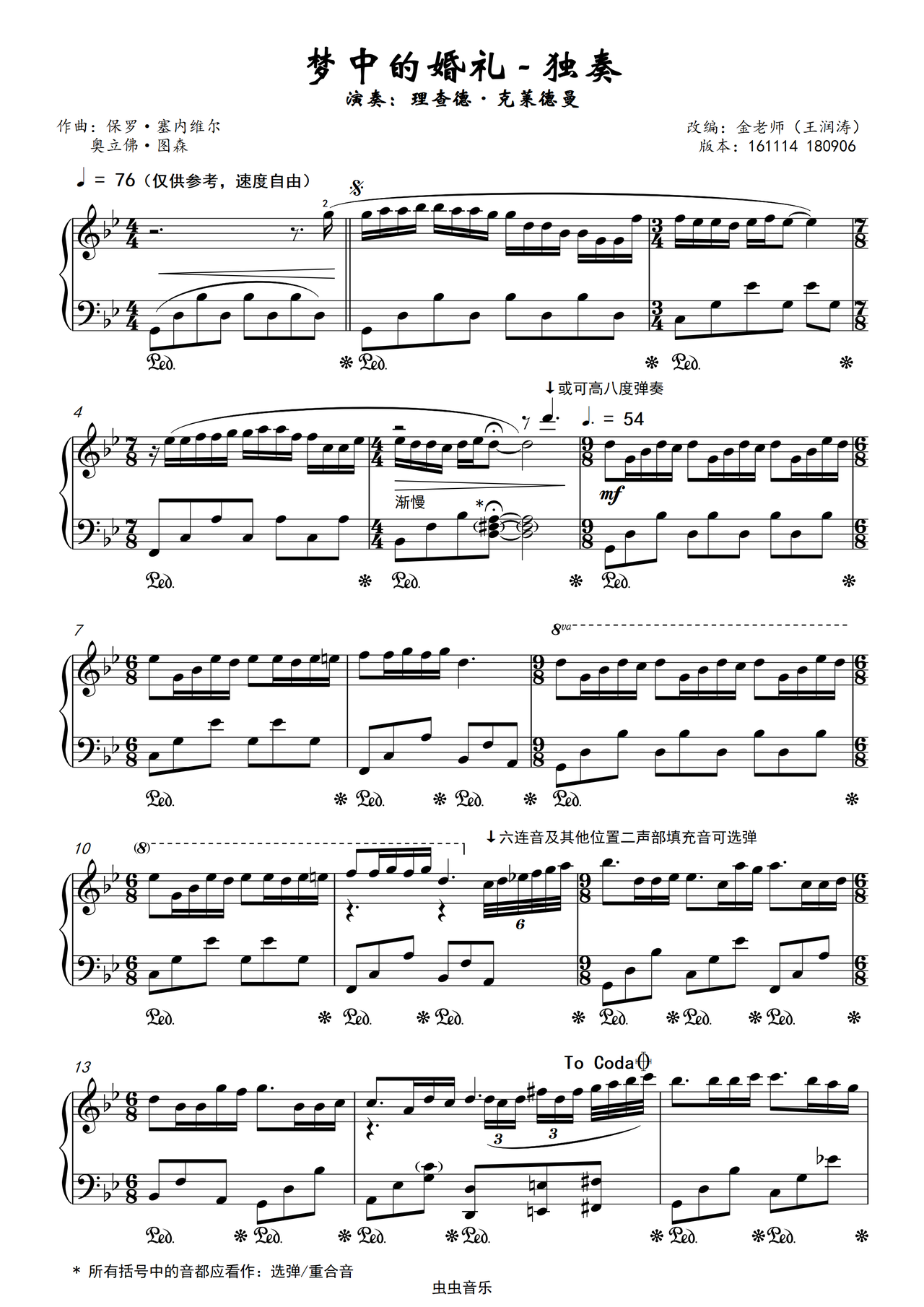 梦中的婚礼-金老师钢琴独奏谱独奏谱梦中的婚礼对所有可能产生疑问的位置都进行了标注,演奏中有任何问题可以与我联系解决,希望大家喜欢!名人名曲理查德克莱德曼g调理查德克莱德曼