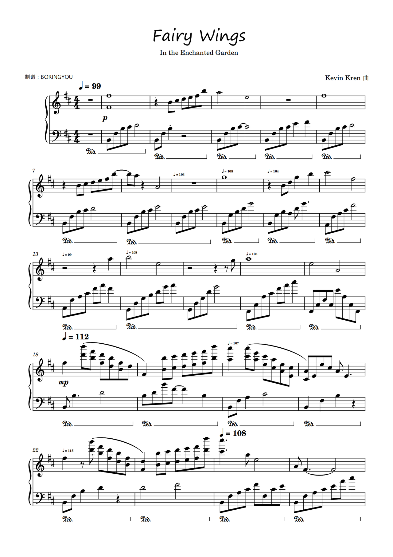 曲谱钢琴网第一钢琴谱门户,提供专业全面的Fairy Wings(Kevin Kren新世纪轻音乐)琴谱,下载Kevin Kren的Fairy Wings(Kevin Kren新世纪轻音乐)钢琴谱就来曲谱音乐网