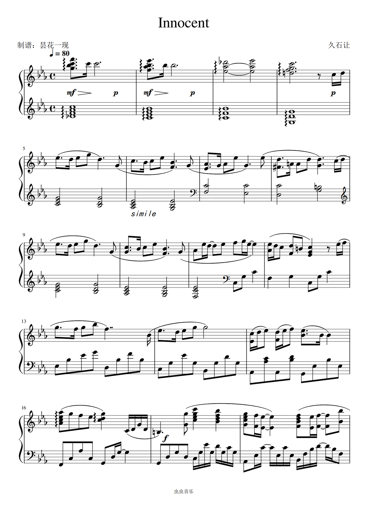 Innocent独奏谱Innocent名人名曲久石让 (ひさいし じょう)c调久石让 (ひさいし じょう)