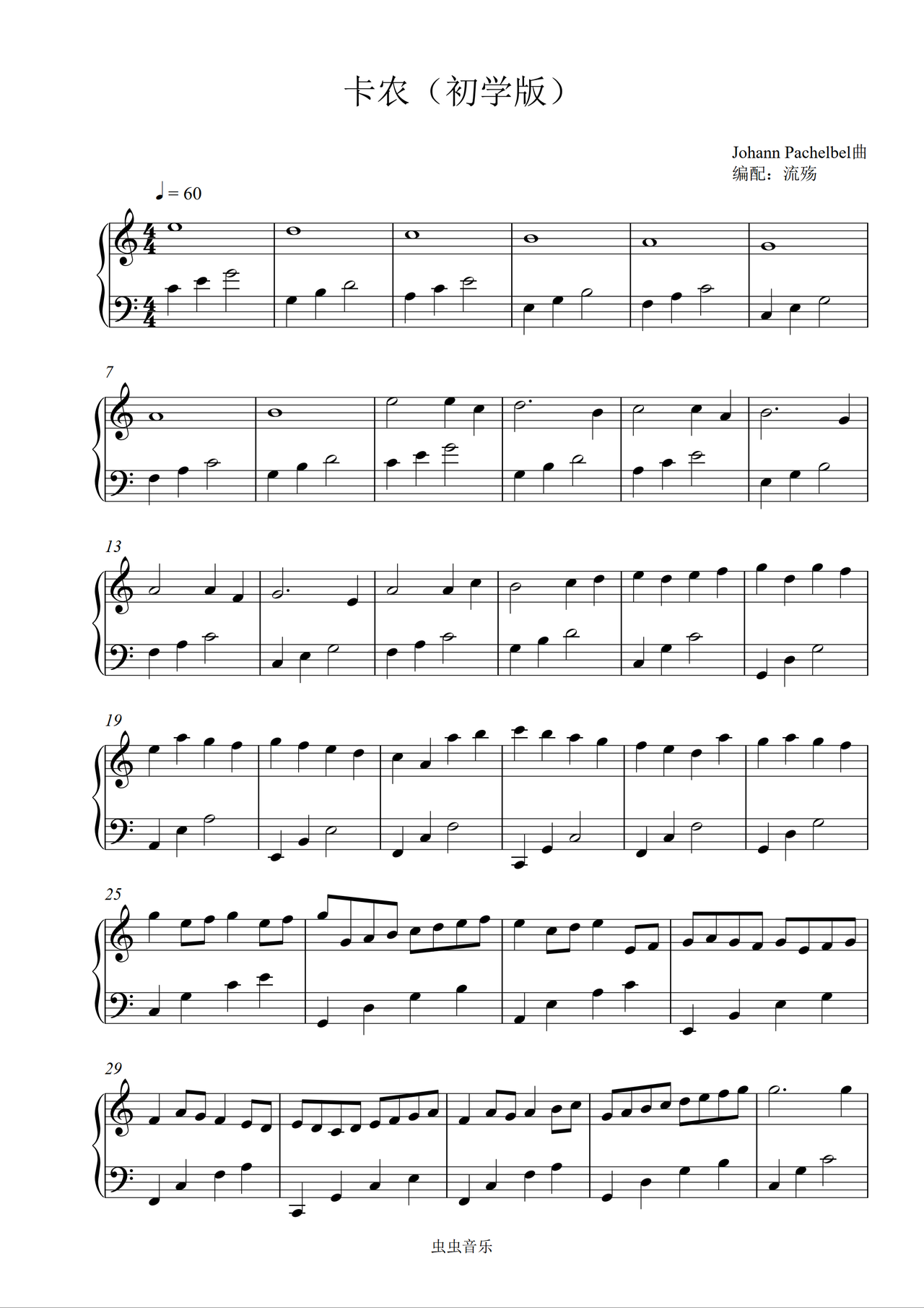 卡农 C调最简版独奏谱D大调卡农影视动漫Johann PachelbelC调Johann Pachelbel