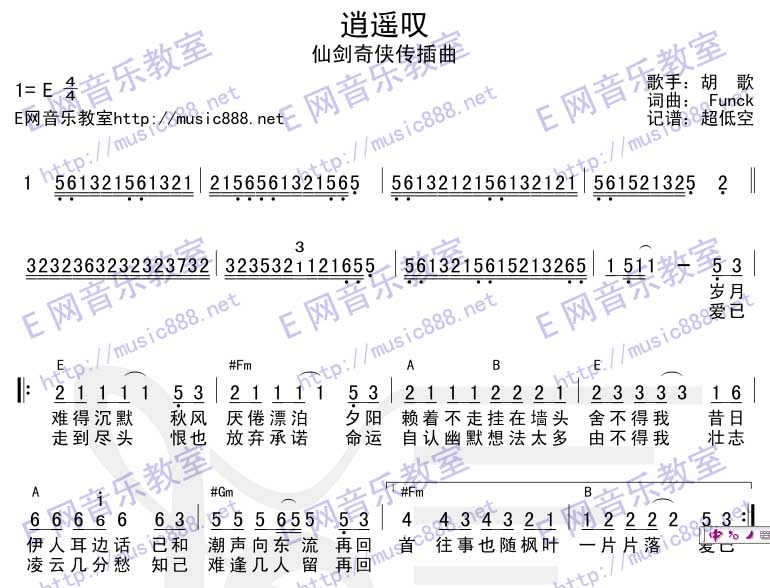 逍遥叹(完美版)弹唱谱逍遥叹华语男歌手胡歌-
