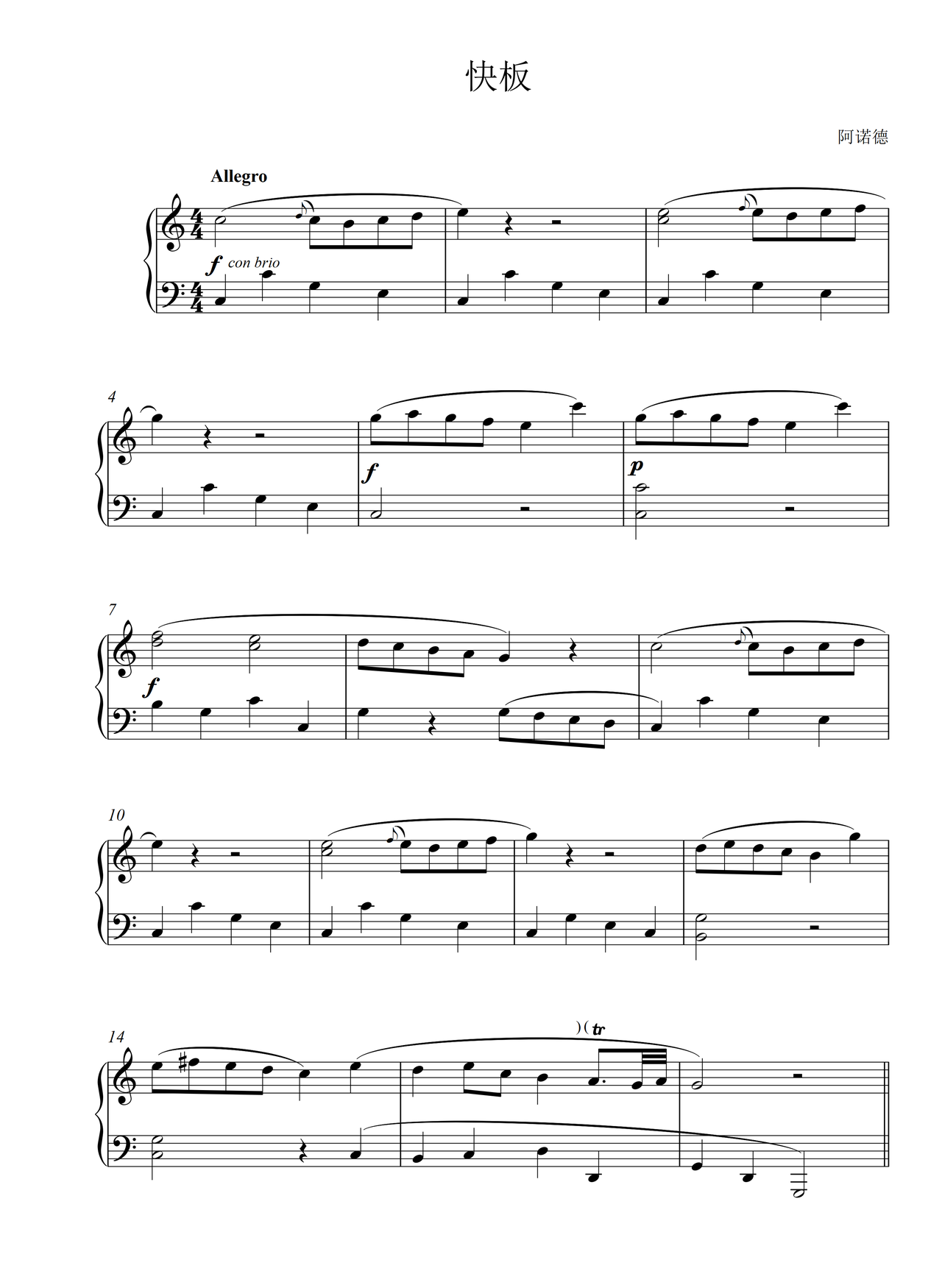 曲谱钢琴网第一钢琴谱门户,提供专业全面的快板琴谱,下载阿诺德的快板钢琴谱就来曲谱音乐网