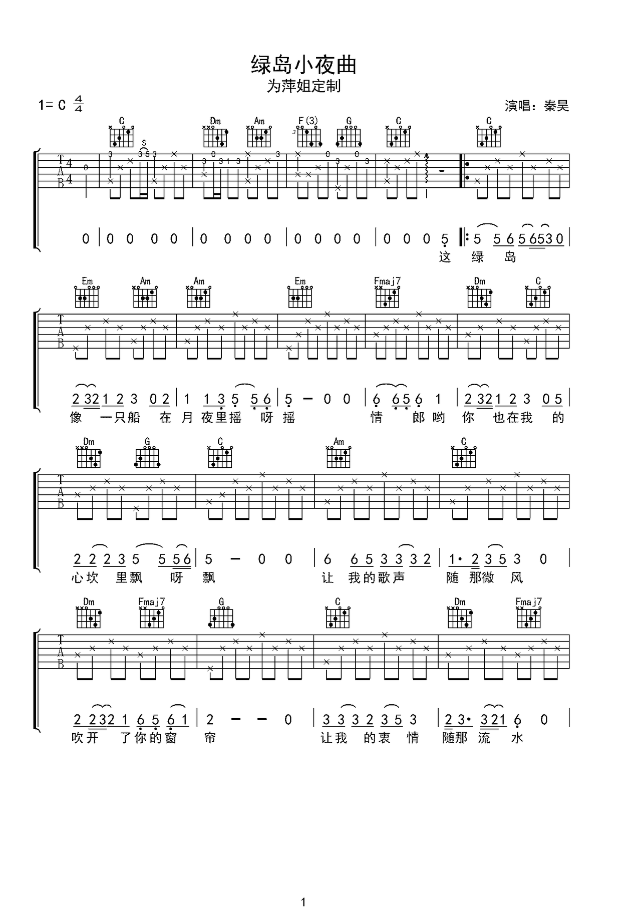 绿岛小夜曲弹唱谱绿岛小夜曲华语男歌手秦昊C调